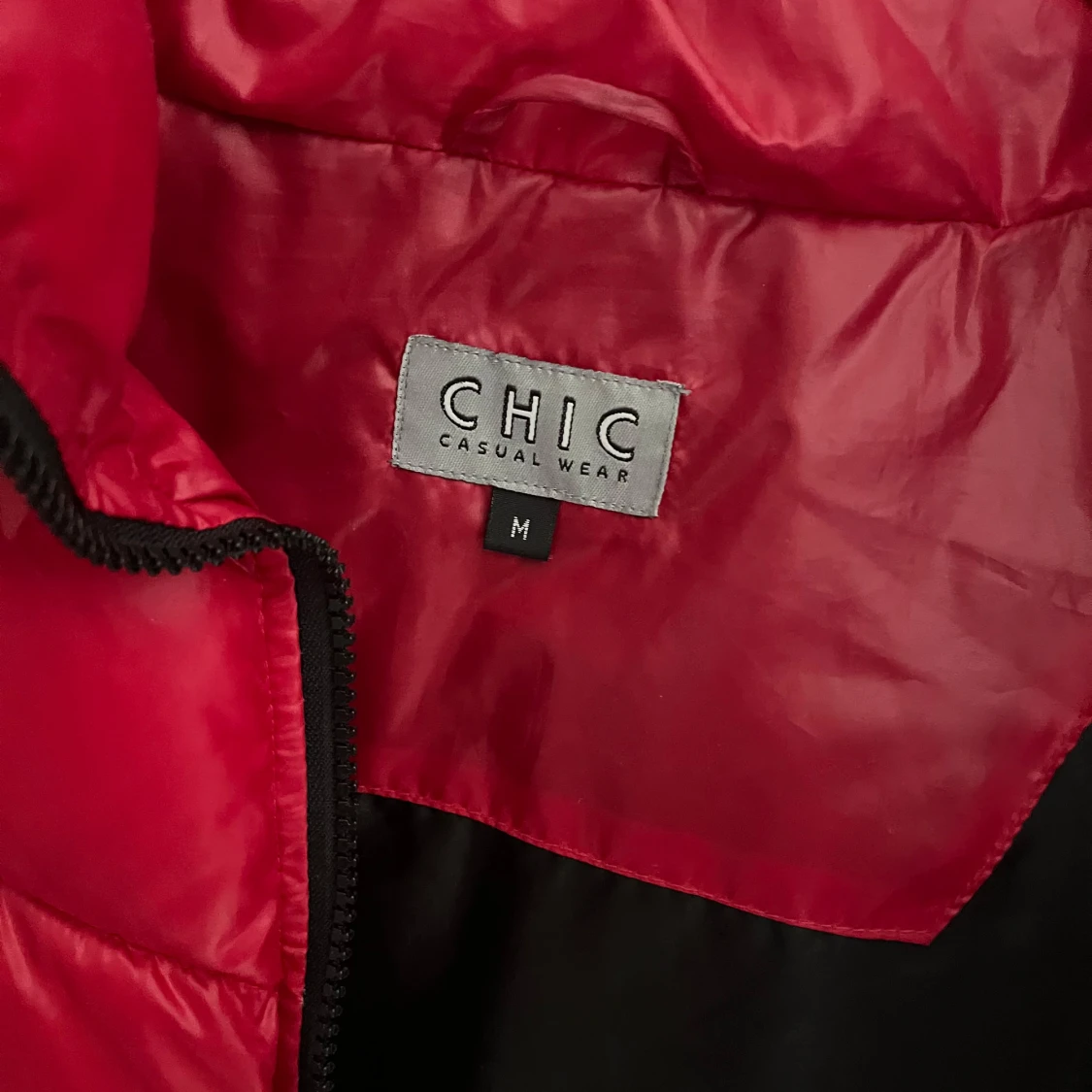 Säljer en röd pufferjacka från Chic Casual Wear i storlek M. Jackan har svart innerfoder, dragkedja framtill och en ficka med dragkedja på sidan. Perfekt för kalla dagar och riktigt snygg färg som sticker ut.