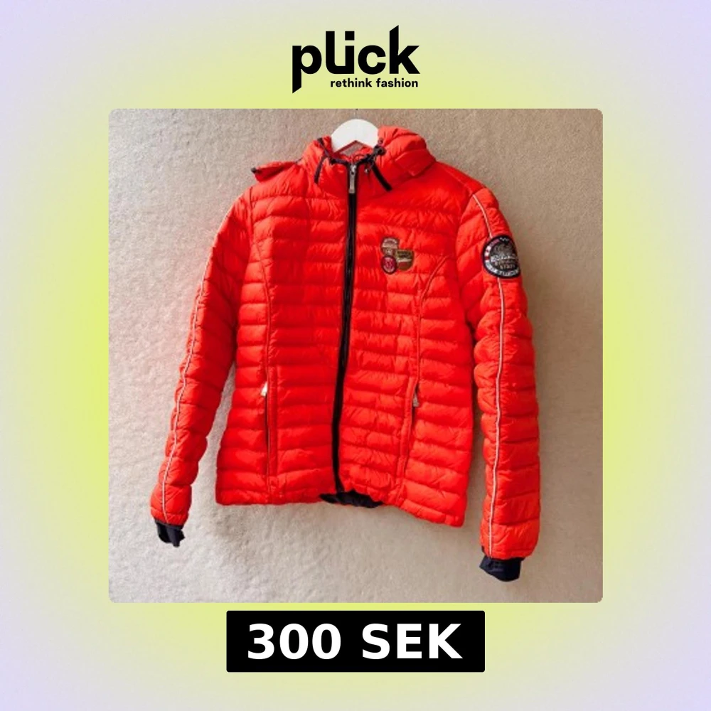 Klarröd / korallröd dunjacka från Napapijri modell ’Armes down’. Avtagbar luva, sidofickor, innerficka, dragkedja fram. Ytterfoder i 100% polyamid; ett extremt slitstarkt och tåligt material. Vattenavvisande, snabbtorkande och dessutom superskönt att bära. Stoppningen består av 80% anddun och 20% dunfjädrar. Fläck på höger arm. I övrigt fint skick. Storlek L Bröstvidd ~104cm Ärm ~ 50cm Längd ~65cm