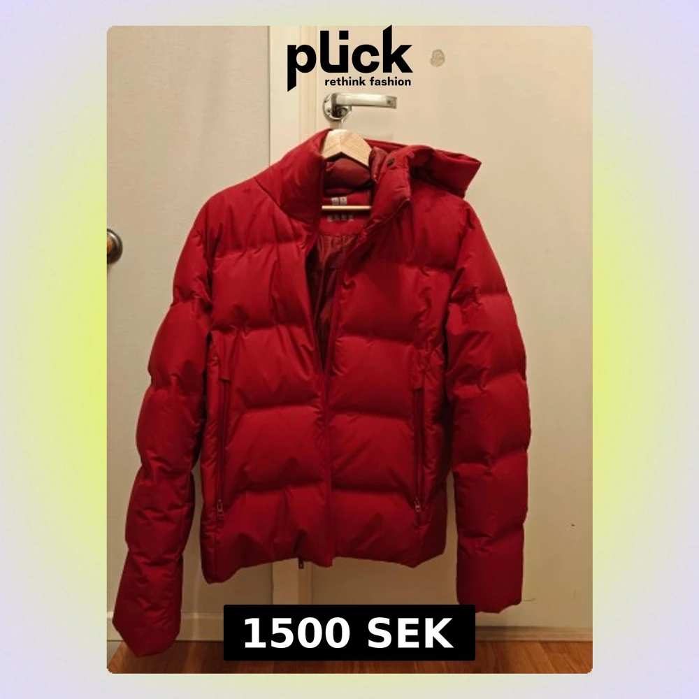 Riktigt fet röd pufferjacka från Uniqlo med huva och dragkedja. Jackan är vadderad och har två fickor med dragkedja framtill. Perfekt för kalla dagar när du vill hålla stilen och värmen. Klassisk passform och snygg, enkel design.