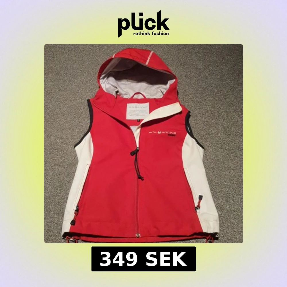 Sportig röd och vit väst från Sail Racing med huva och dragkedja framtill. Tillverkad i vindtätt material, perfekt för aktiva dagar utomhus eller på havet. Funkar också perfekt till vardagliga utflykter eller till skolan. Har nycket små tecken på användning. Är liten i storleken passar 152-164 eller xxs.
