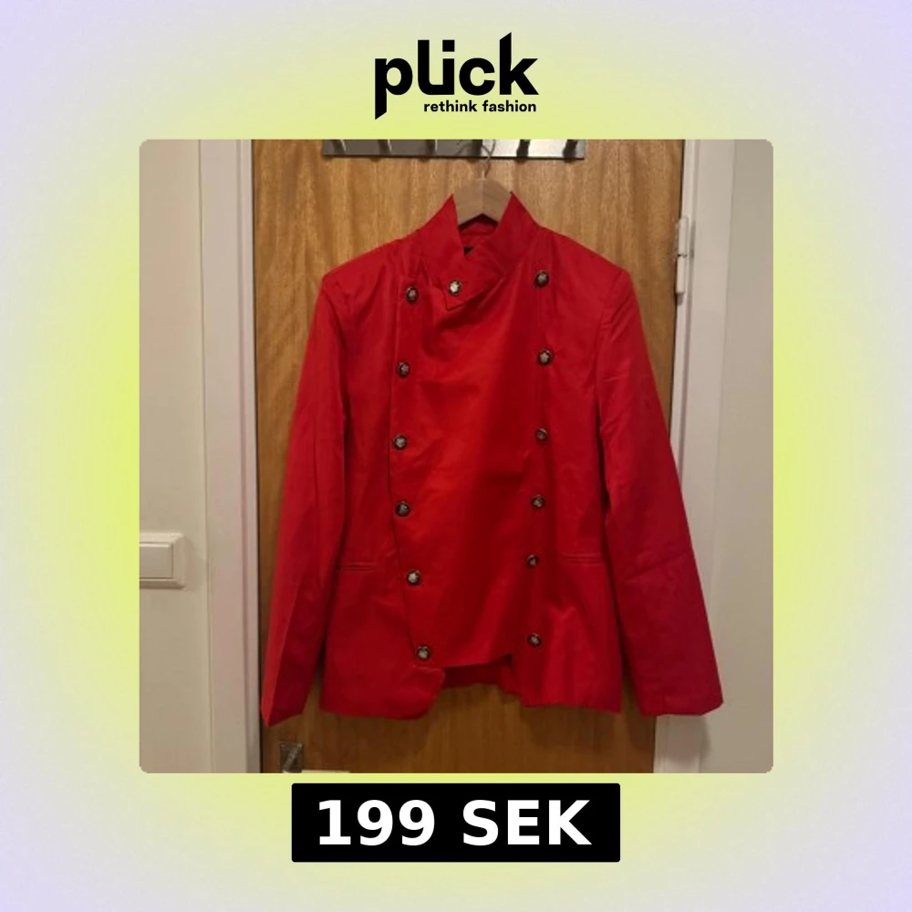 En snygg röd skepparkavaj dekorativa svarta knappar med silverfärgade emblem. Jackan har hög krage och raka fickor framtill. Passformen är normal och materialet känns som polyester. Perfekt för maskerader av olika slag och dig som söker en klassisk uniform. Skickas ca 1-3 dagar efter köp.