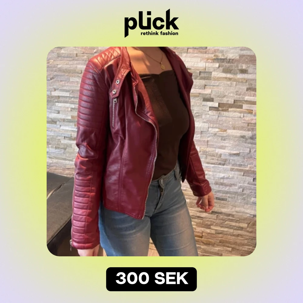 En fin röd vintage skinnjacka med silver detaljer, bra passform, i storlek M.