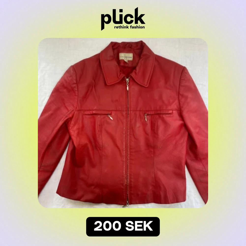 Super fin röd skinnjacka! Den är tyvärr lite sliten på insidan, men det är inget som syns när man har den på. Storlek 38!