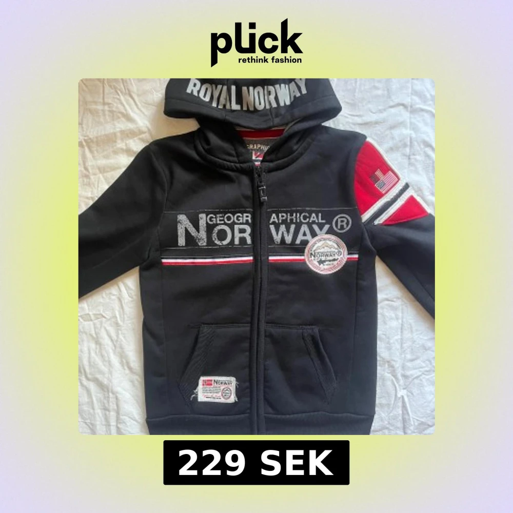 Svart hoodiejacka från Geographical Norway med dragkedja, stora tryck och broderade märken framtill och på ärmen. Jackan har huva med tryck, röda och vita detaljer samt fickor framtill. Perfekt för dig som gillar sportig och street-inspirerad stil.