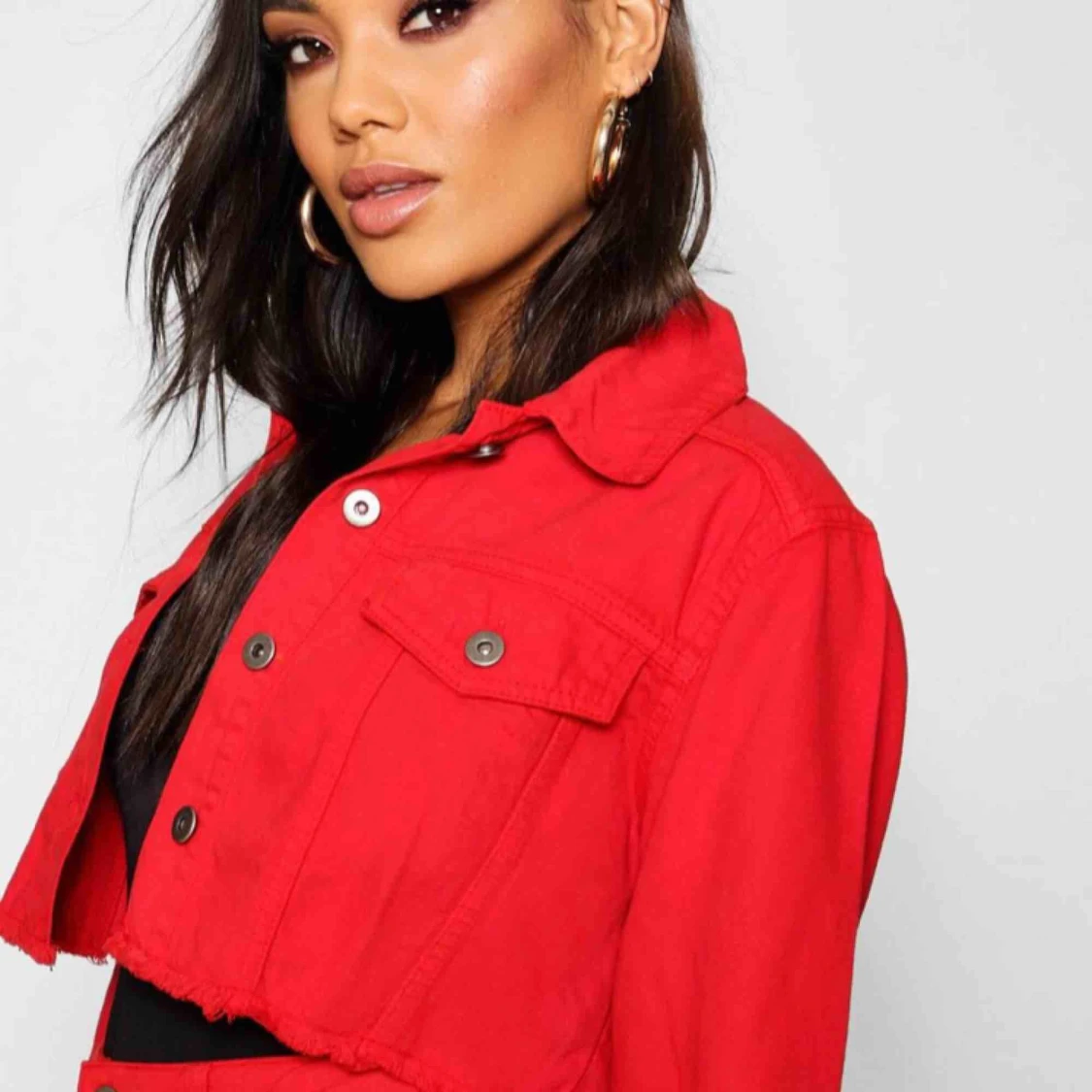 Supersnygg röd cropped denim jacket från Boohoo i storlek 36. Perfekt nu i sommar och till festivaler!! Tar endast swish och frakt går på 50kr :)) Ifall ni har några frågor eller vill ha bilder på jackan så är det bara att skriva!!