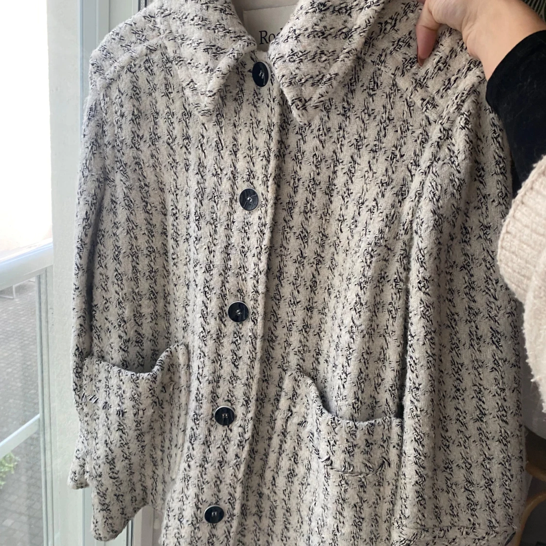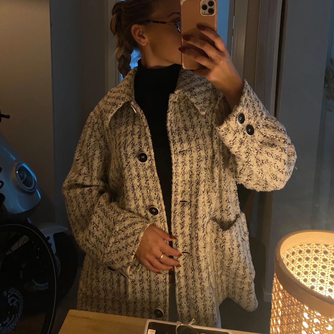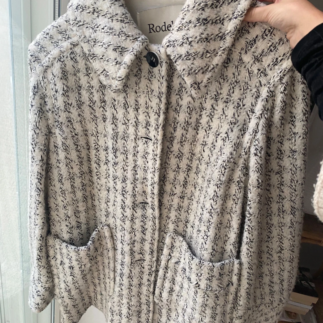 Rodebjer jacka, storlek small men väldigt oversized. Rodebjer lappen i nacken har lossnat i ena hörnet, men sitter kvar. Fin och mysig jacka överlag. Fick i present så vet inte inköpspris!