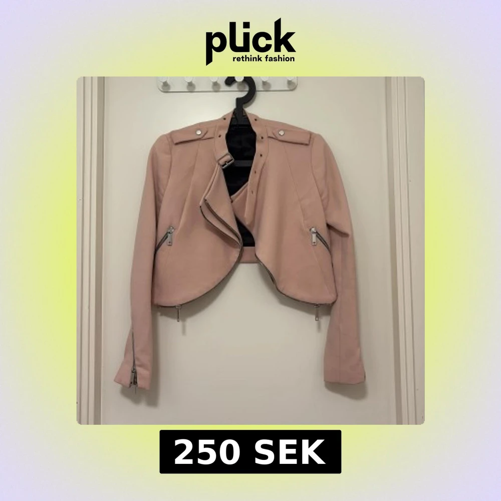 Snygg ljusrosa bikerjacka från Zara Woman med coola dragkedjor, spännen och axeldekorationer. Jackan är croppad och har långa ärmar med dragkedjor vid ärmsluten. Perfekt för dig som vill sticka ut med en edgy men feminin look.
