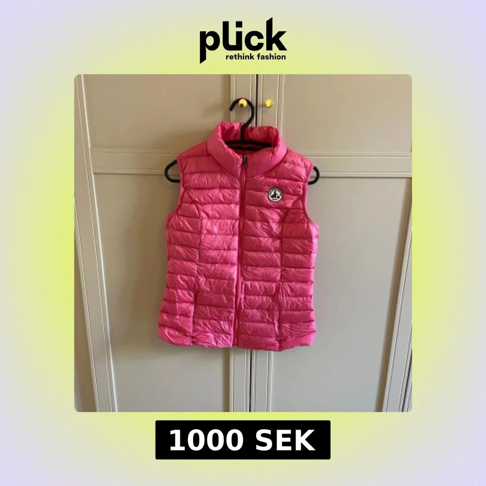 Säljer en snygg rosa dunväst från JOTT med dragkedja framtill. Västen har en hög krage och ett märke på bröstet. Endast använd en gång så den är i princip ny! Har kvar påsen som man kan stoppa ner den i och det är pga den som västen ser lite knöglig ut, då den varit nedstoppad i sin påse (försvinner vid användning). 💕storleken står ej på västen men den funkar för både xs och s! Inköpspris är ca 1700