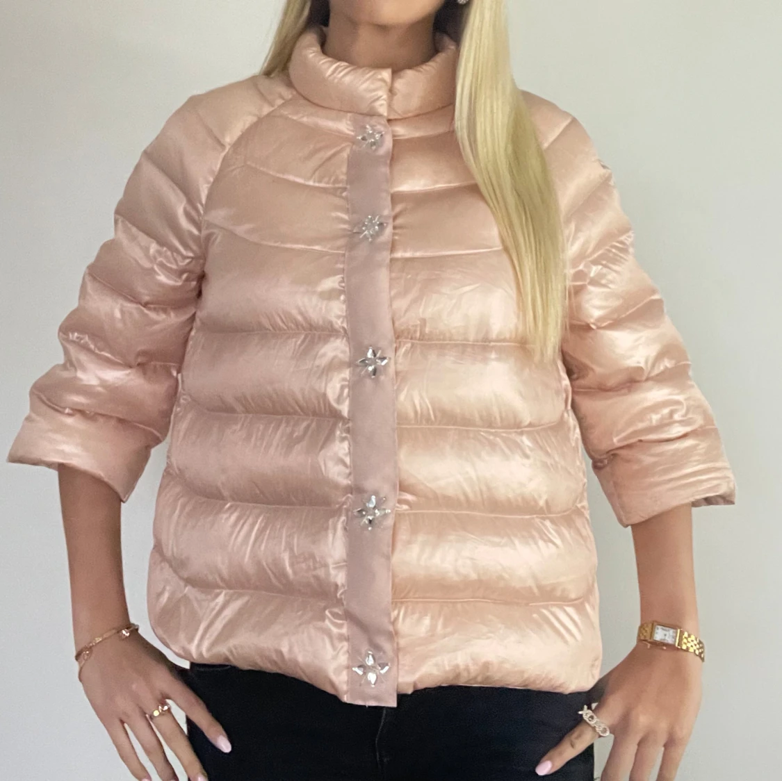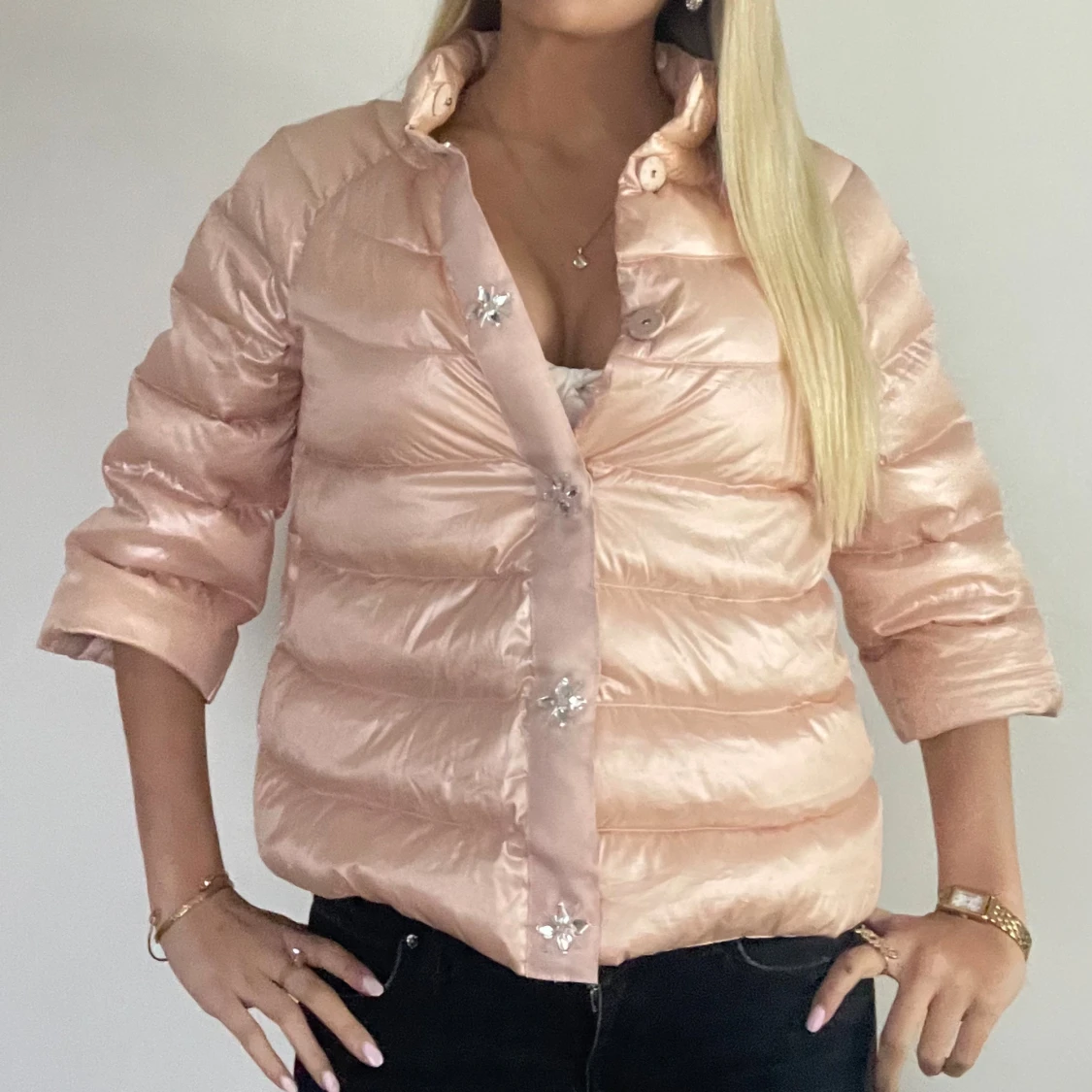 FÖLJ FÖR LIKNANDE💕 rosa Herno liknande jacka som är perfekt för höst och vinter, väldigt varm. Fina detaljer😍 Storlek S i perfekt skick! Tryck köp nu! TK-0071