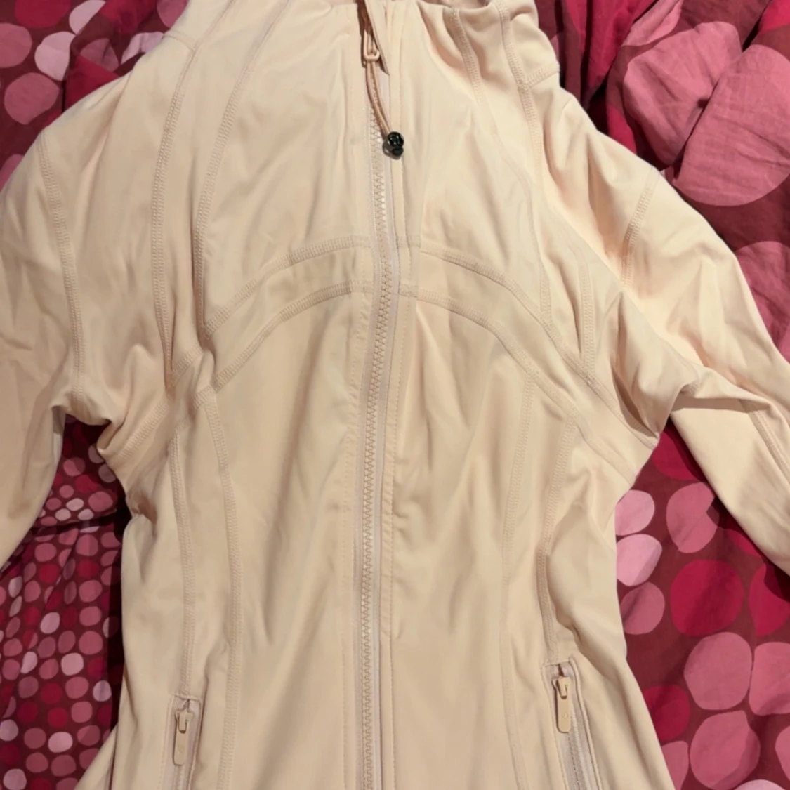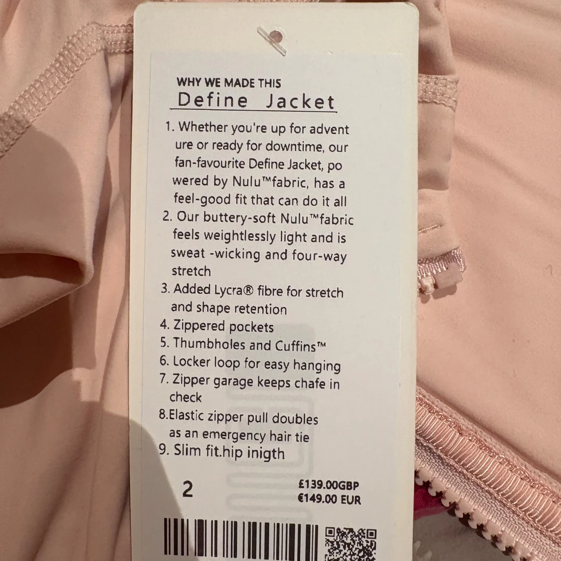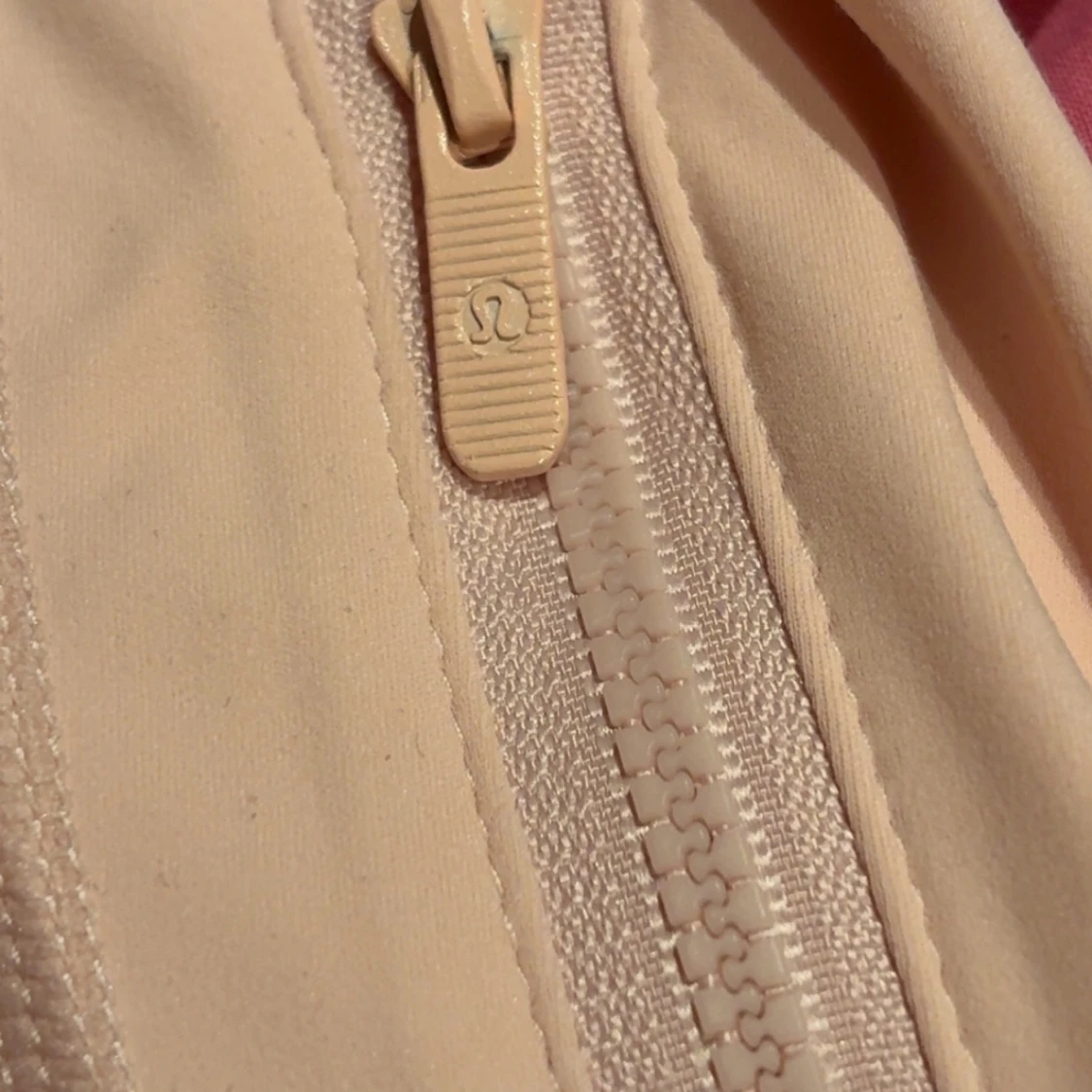 Storlek 2/XS helt ny. Snygg rosa träningsjacka från Lululemon med figurnära passform och hel dragkedja framtill. Jackan har långa ärmar med tumhål, två fickor med dragkedja och diskreta sömdetaljer som ger en sportig vibe. Perfekt för gymmet eller powerwalks.