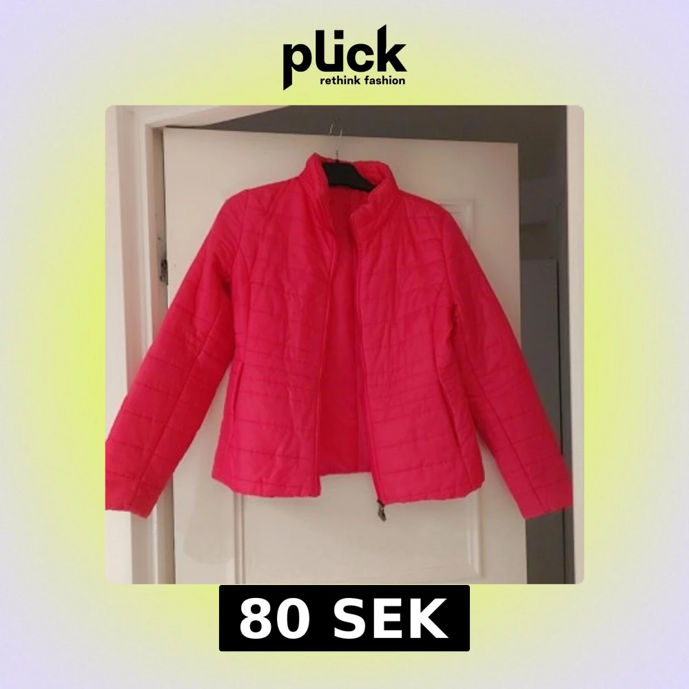 Säljer en snygg rosa quiltad jacka med dragkedja. Jackan har en normal passform och långa ärmar, perfekt för vår och höst. Den är både stilren och praktisk med en enkel design.
