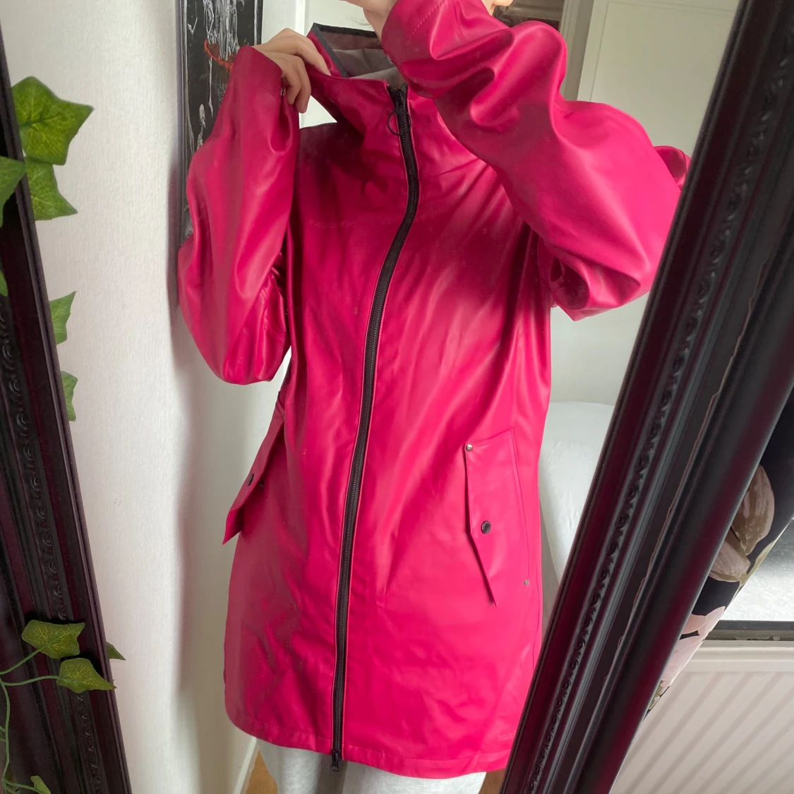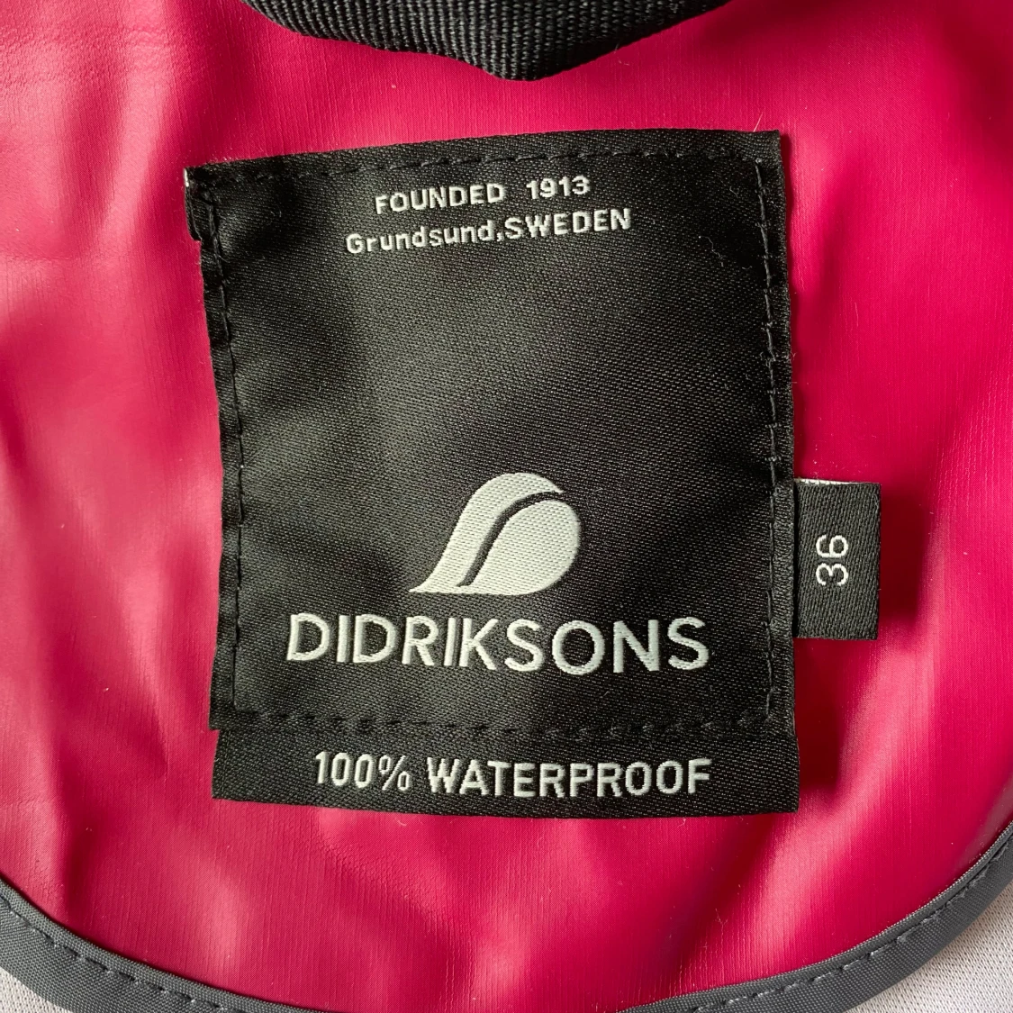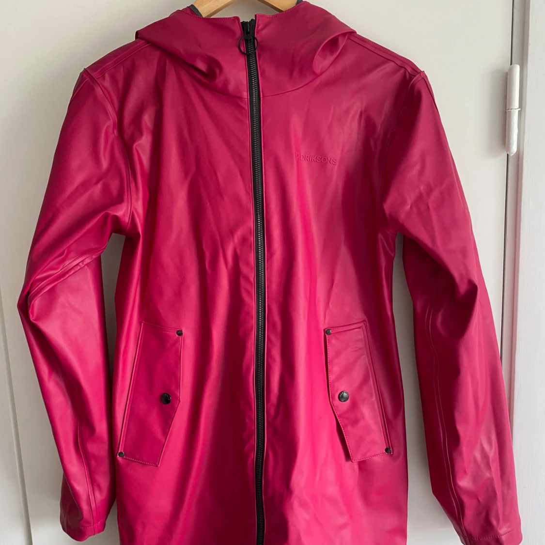 Snygg rosa regnjacka från Didriksons med fin passform. Bekväm och vattentät, knappt använd och i jättefint skick! Mindre fläckar på insidan som inte syns.