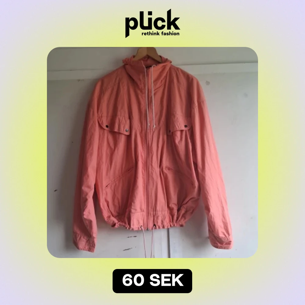 Säljer en snygg korall vindjacka med dragkedja framtill. Jackan har en huva med snörning och två stora fickor med knappar på bröstet. Den har en avslappnad passform och elastisk nederkant. oversize passar de flesta. äkta vintage.