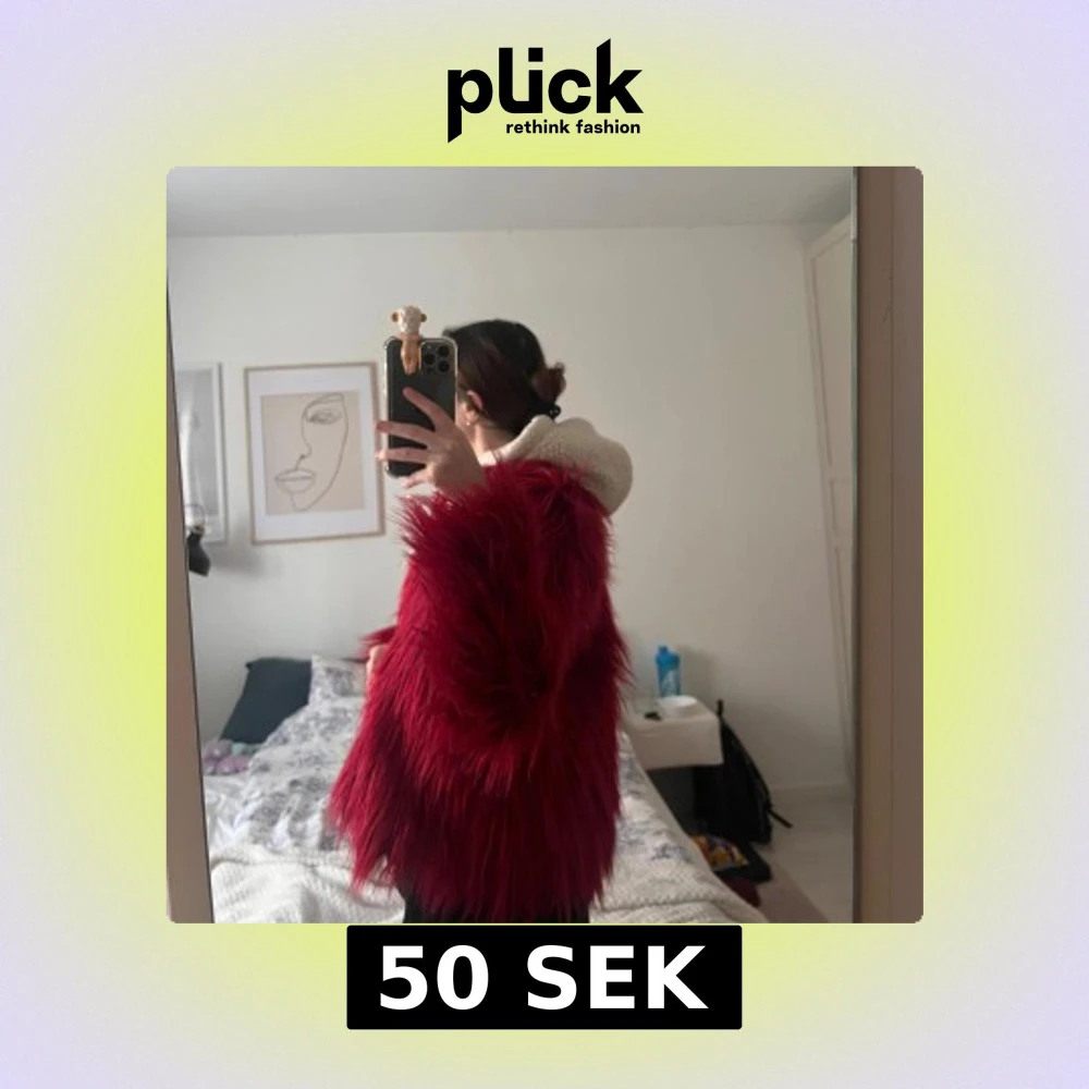 Säljer en cool röd pälsjacka från Zara. Jackan har en fluffig design med långa ärmar. Köpt på baravdelning men kommer passa en mindre xs. Jag är 166 cm lång.