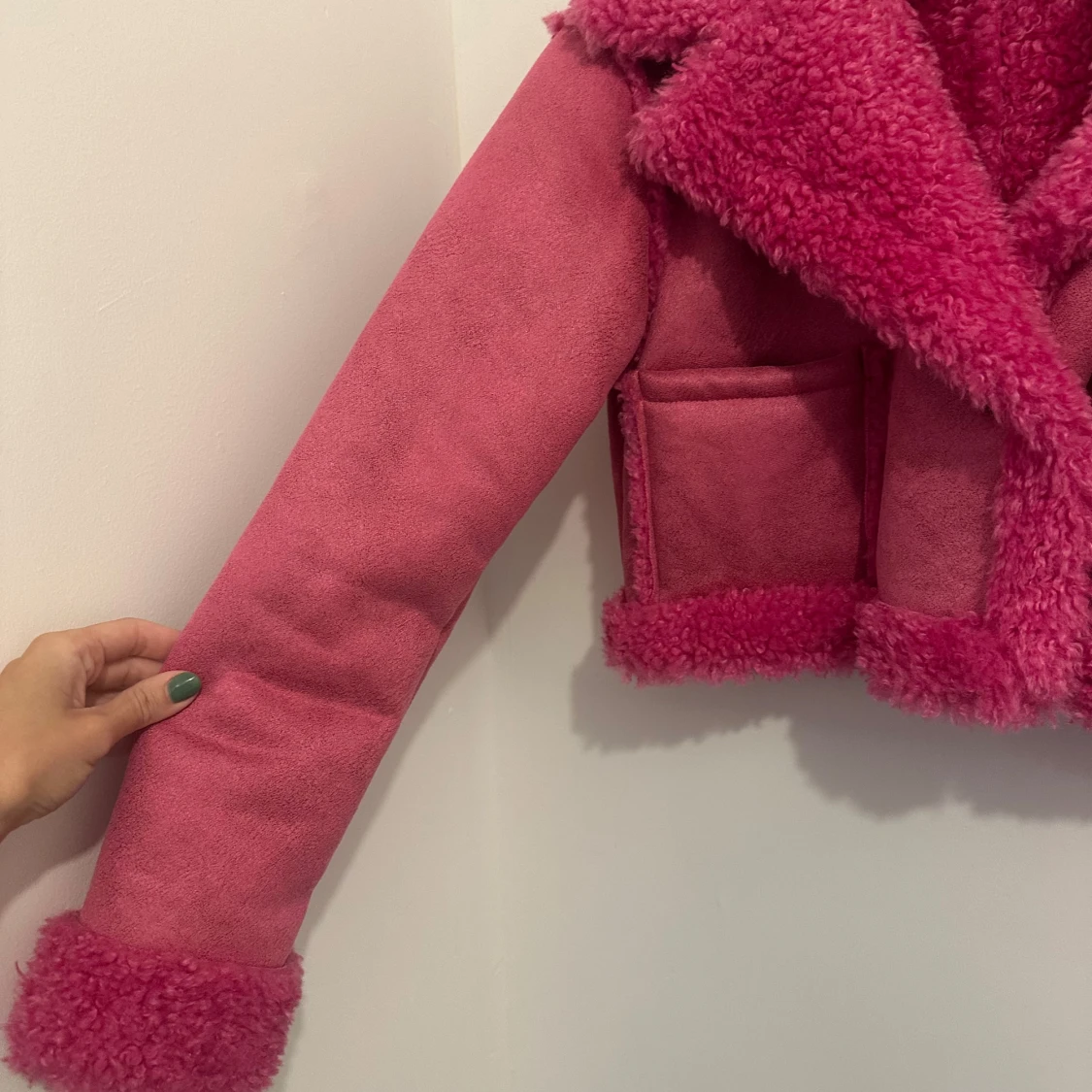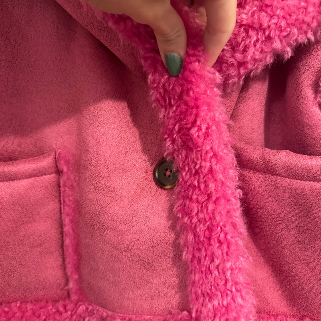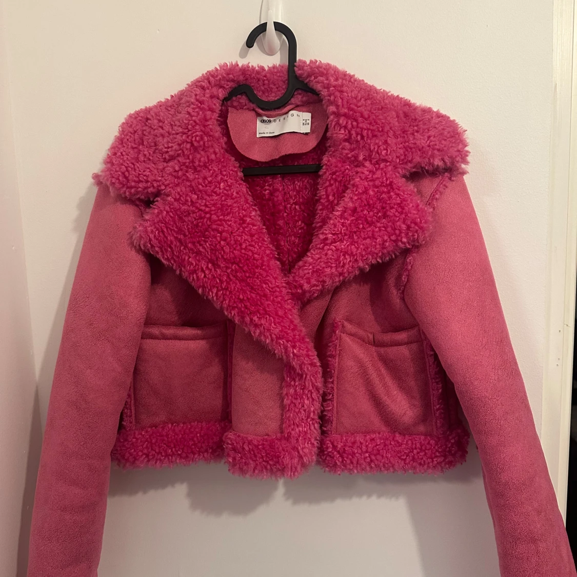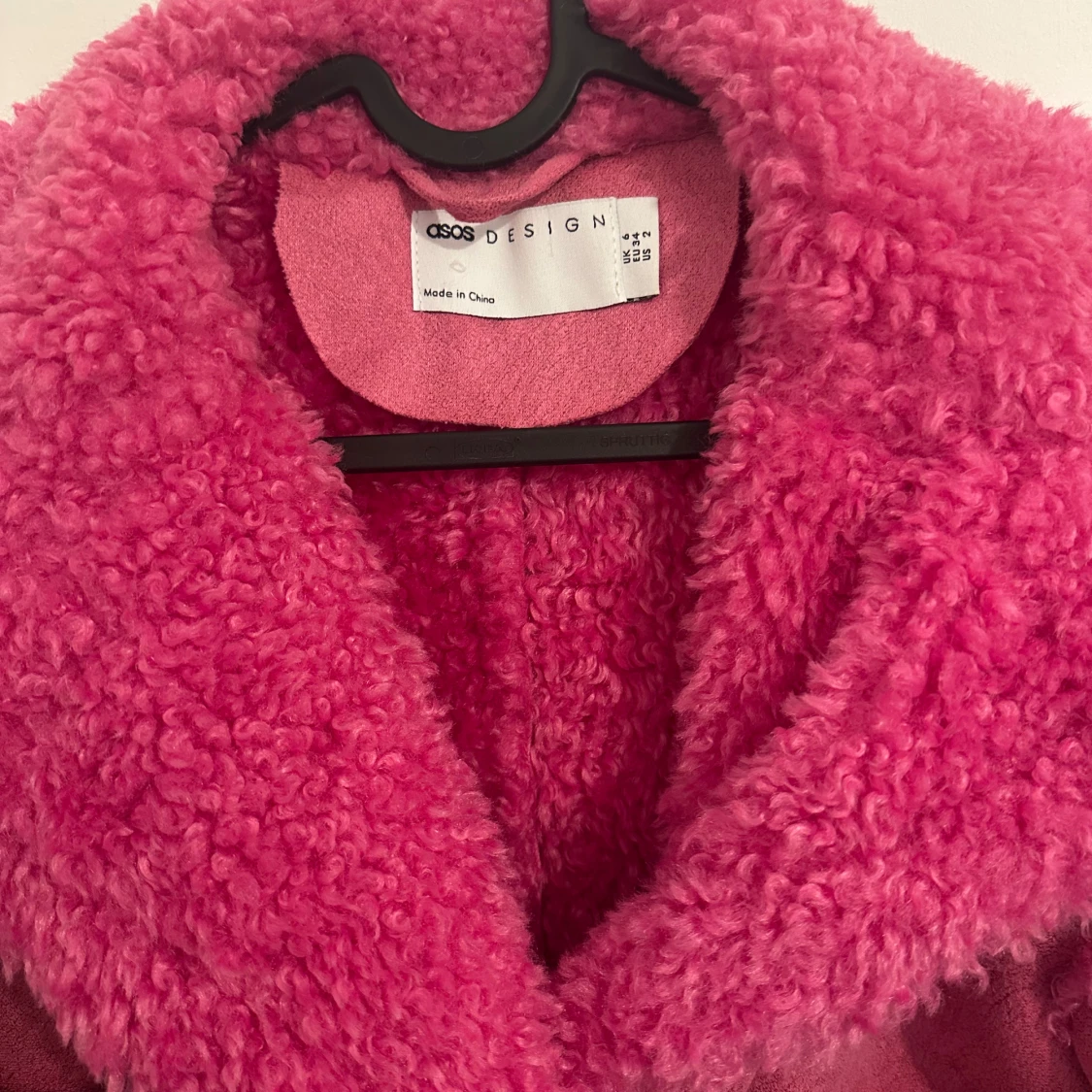 Superfin teddyjacka i stark rosa från ASOS DESIGN. Jackan är croppad med stora fickor, bred krage och mysig teddystruktur. Stängs med knapp framtill och har fluffiga detaljer vid ärmslut och nederkant. Perfekt statement-plagg för dig som vill sticka ut.