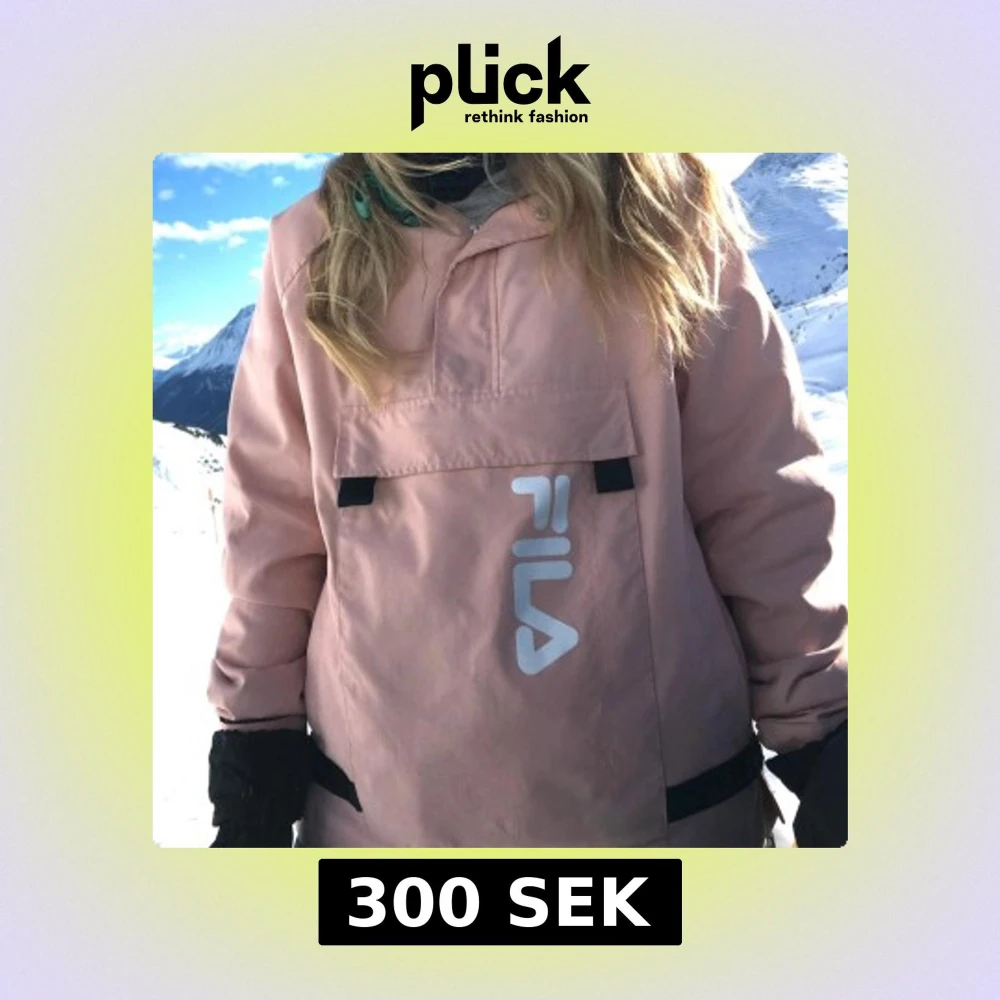 Snygg rosa vindjacka från FILA med stor ficka framtill och justerbar huva. Perfekt för skidåkning eller blåsiga dagar och har en sportig look med logga på bröstet.