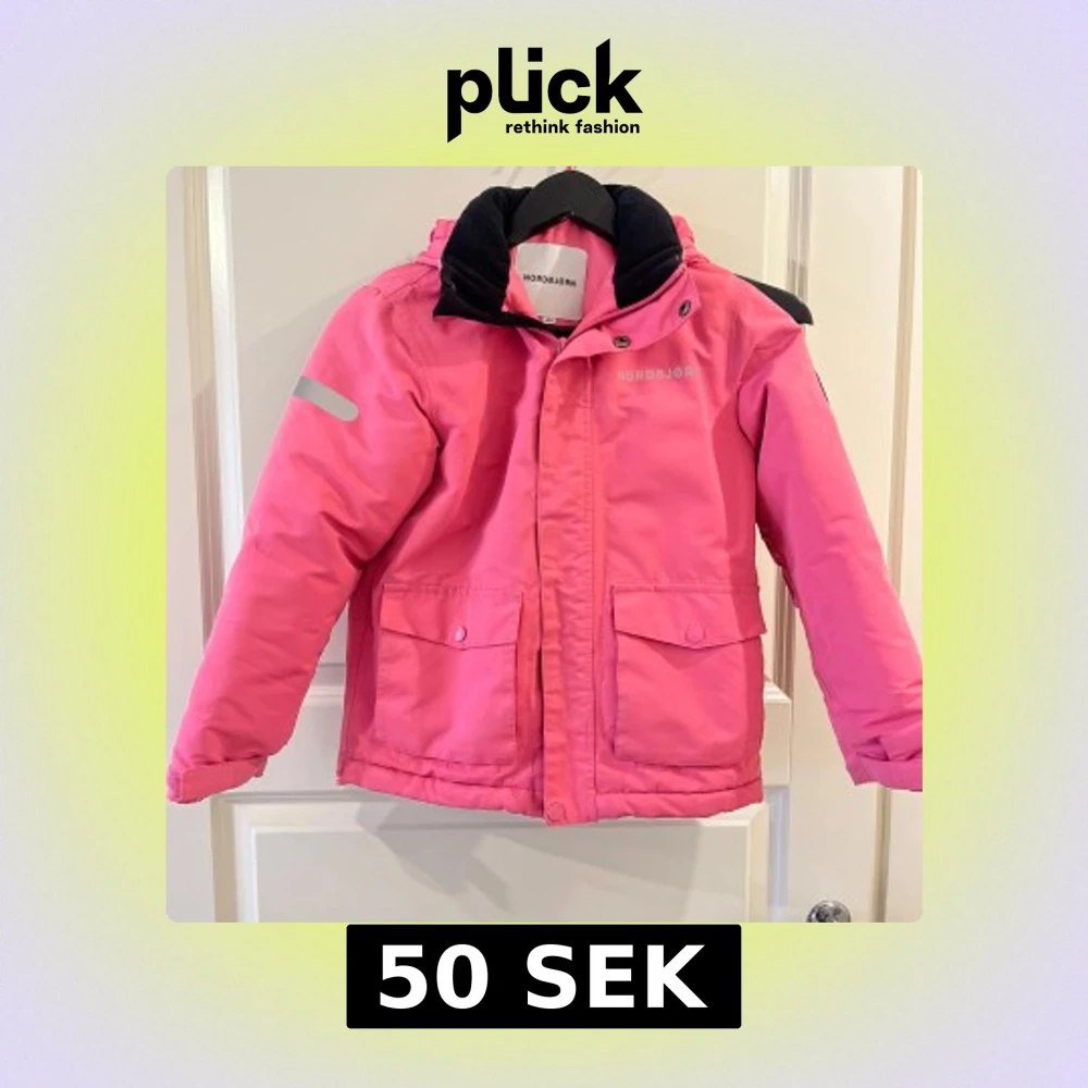 Säljer en rosa vinterjacka från Nordbjørn med hög krage och praktiska fickor framtill. Jackan har lång ärm med justerbar kardborre vid ärmslut och reflexdetalj på ena ärmen. Perfekt för kalla dagar!