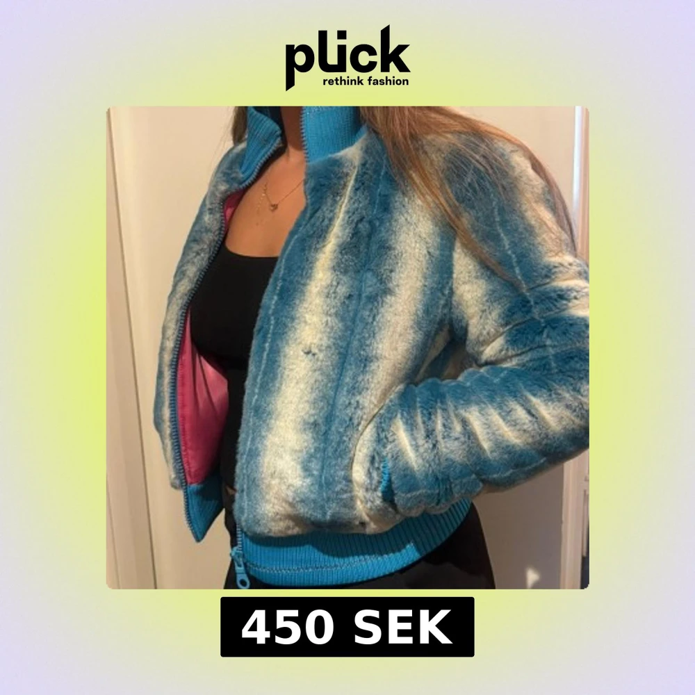 Säljer en unik pälsjacka från Roxy med blå och vita ränder, croppad passform och ribbade muddar. Jackan har dragkedja framtill och insidan är fodrad med rosa satin. Perfekt för dig som vill sticka ut med en färgstark look.