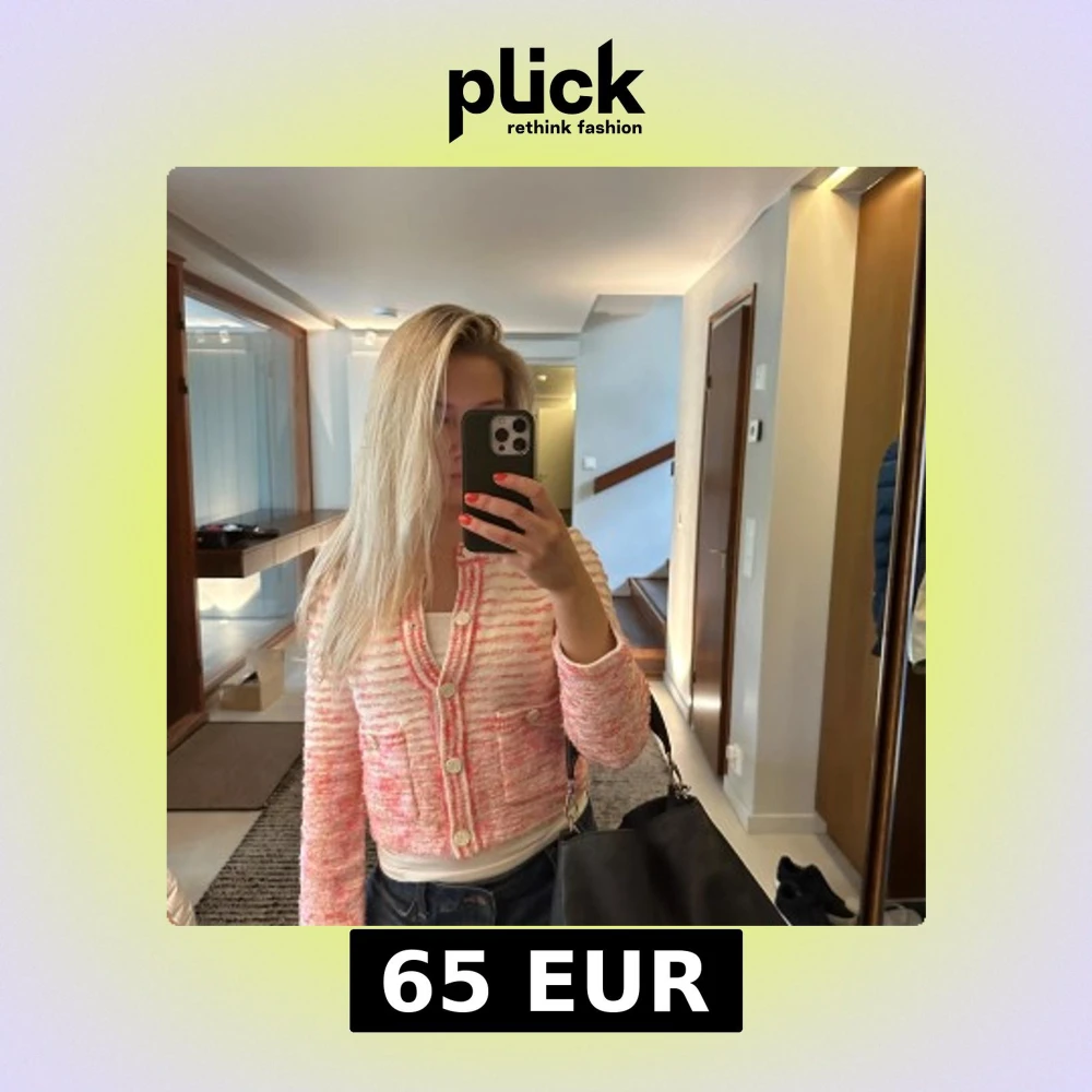 Säljer en snygg cardigan jacka från Maje i vit och rosa med rutigt mönster. Jackan är croppad, har långa ärmar, två fickor fram och dekorativa vita knappar. Materialet är stickat och känns mjukt och fluffigt. Perfekt för dig som gillar färg och coola detaljer. For size xs-s