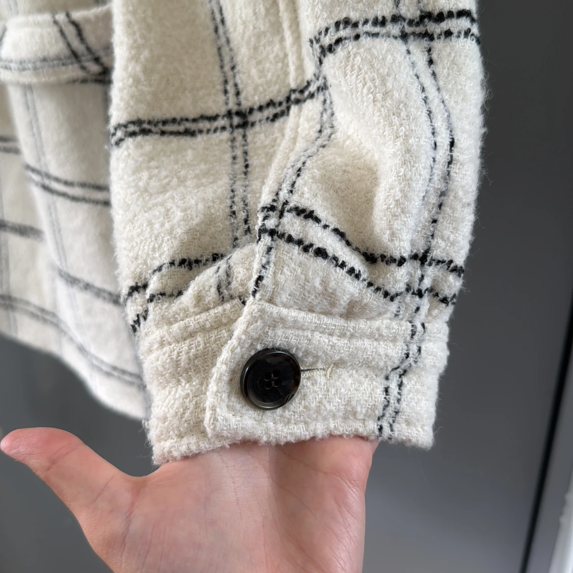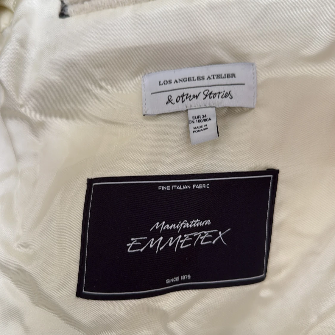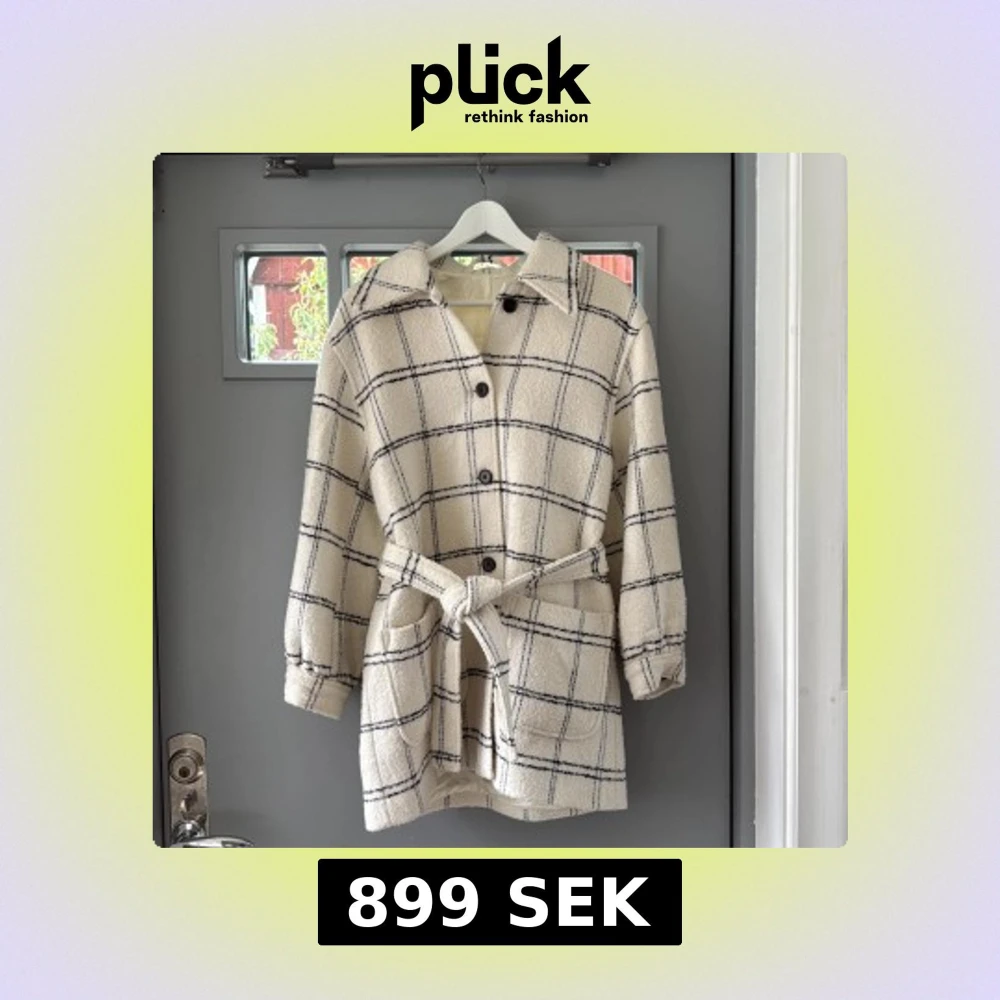 Snygg jacka i naturvitt med svart rutmönster från & Other Stories. Jackan har stora fickor, knappar framtill och ett bälte i midjan för extra stilpoäng. Mjuk / stickad känsla, perfekt för dig som gillar trendiga och bekväma ytterplagg.