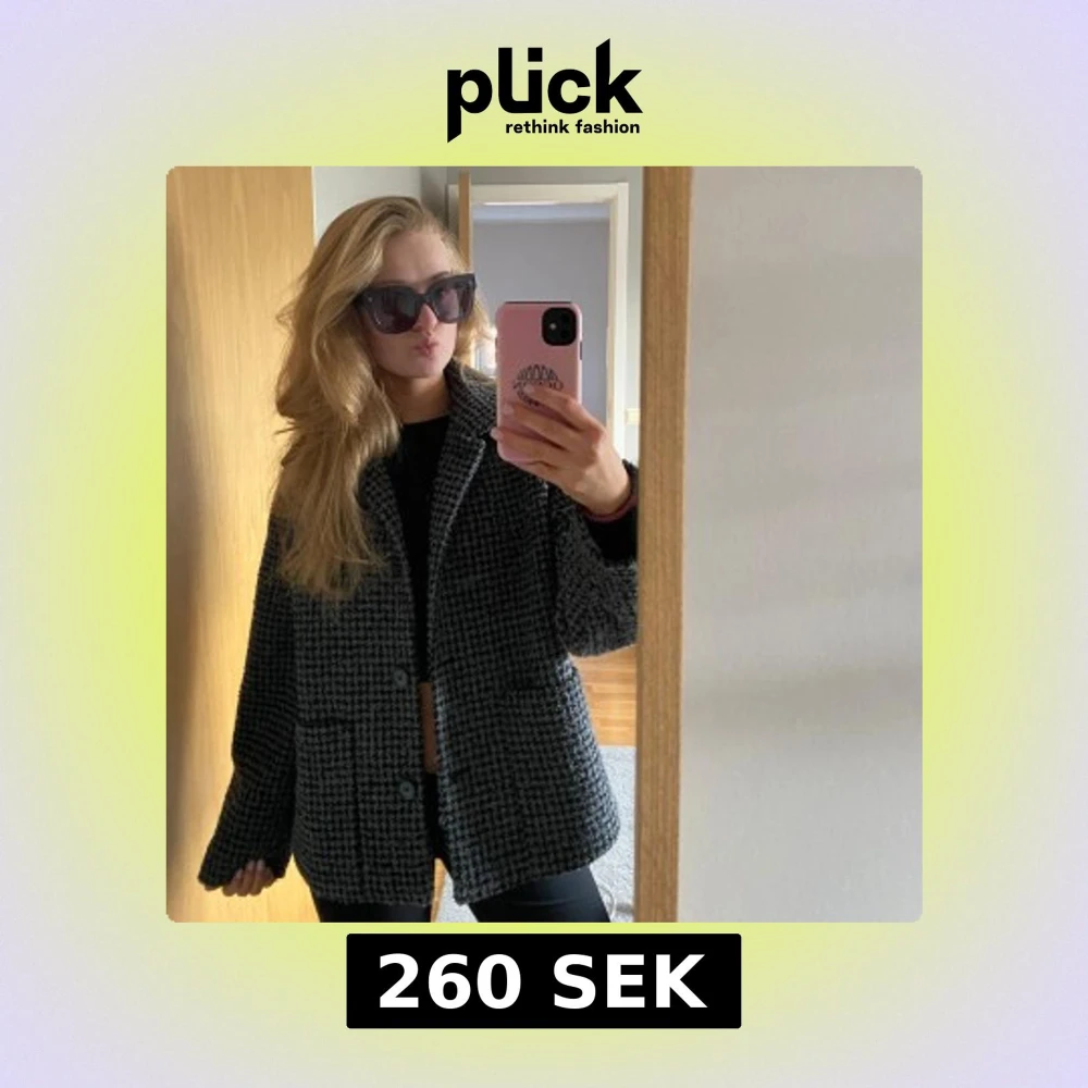 Snygg rutig jacka i svart och grått med en oversized passform. Jackan har långa ärmar och knappar framtill. Perfekt för våren!