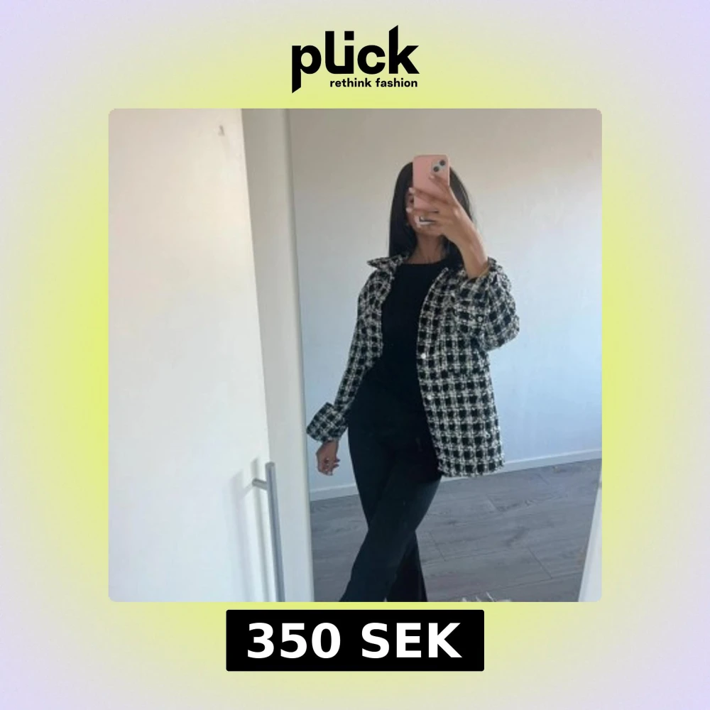 Snygg overshirt i svart och vitt rutigt mönster med klassisk krage och knappar framtill. Jackan har en loose passform och är tillverkad i ett grovt, strukturerat material som ger en trendig look. Perfekt att slänga över en t-shirt eller stickad tröja.