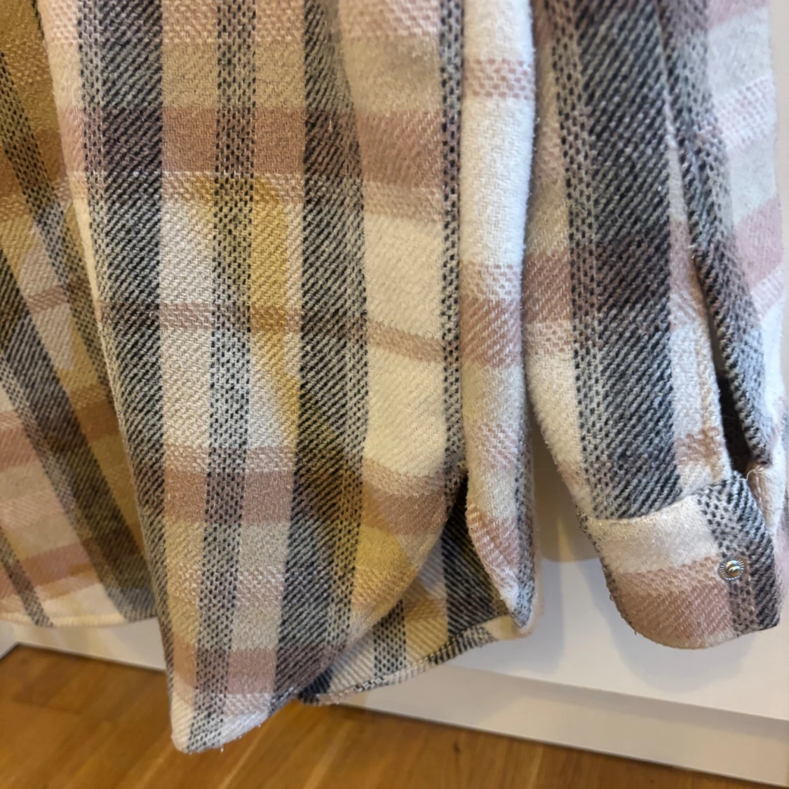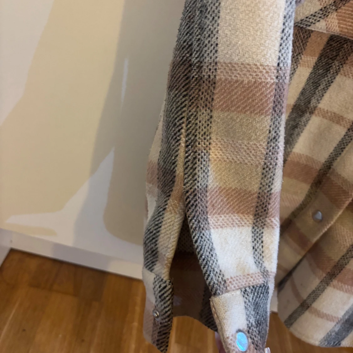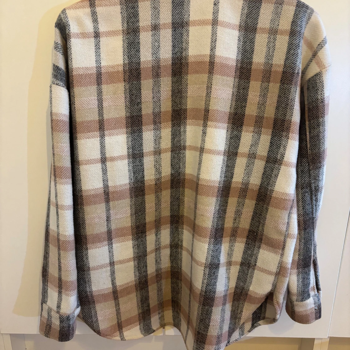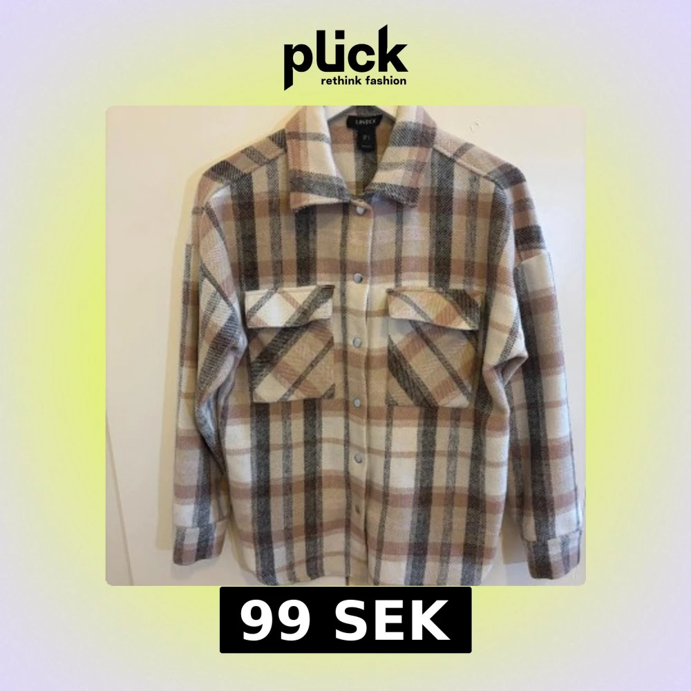 Skjort kappa från Lindex i mjukt material med rutigt mönster i beige, brunt och grått. Skjort kappan har två stora bröstfickor med lock, tryckknappar framtill och klassisk krage. Perfekt att slänga över en hoodie eller t-shirt.