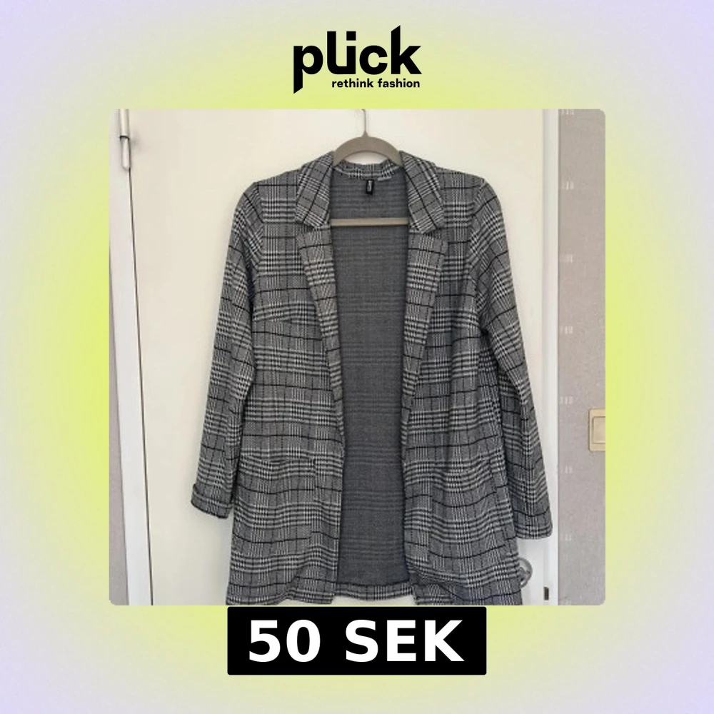 Snygg rutig kavaj från H&M Divided i svart, grått och vitt. Klassisk modell med krage, långa ärmar och två fickor framtill. Perfekt för dig som gillar en stilren och trendig look. Tunnare material som funkar året runt. Endast använd en gång.
