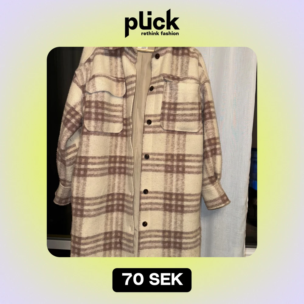 Säljer en superfin lång kappa i beige och brunt rutigt mönster. Den har långa ärmar och knappar framtill. Perfekt för höst och vår, och ger en stilren look. Passar bra till både vardag och fest. Lite oversize