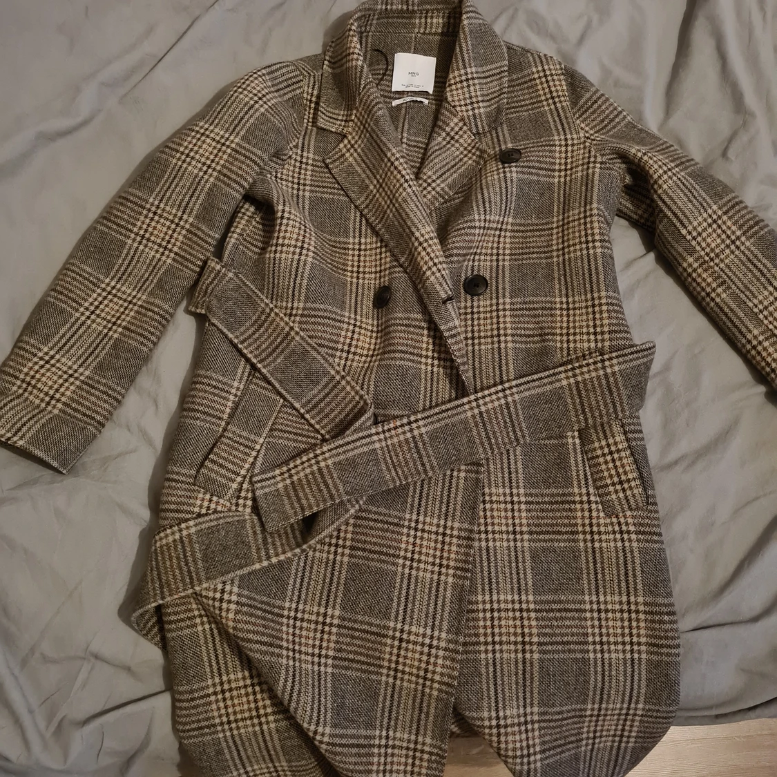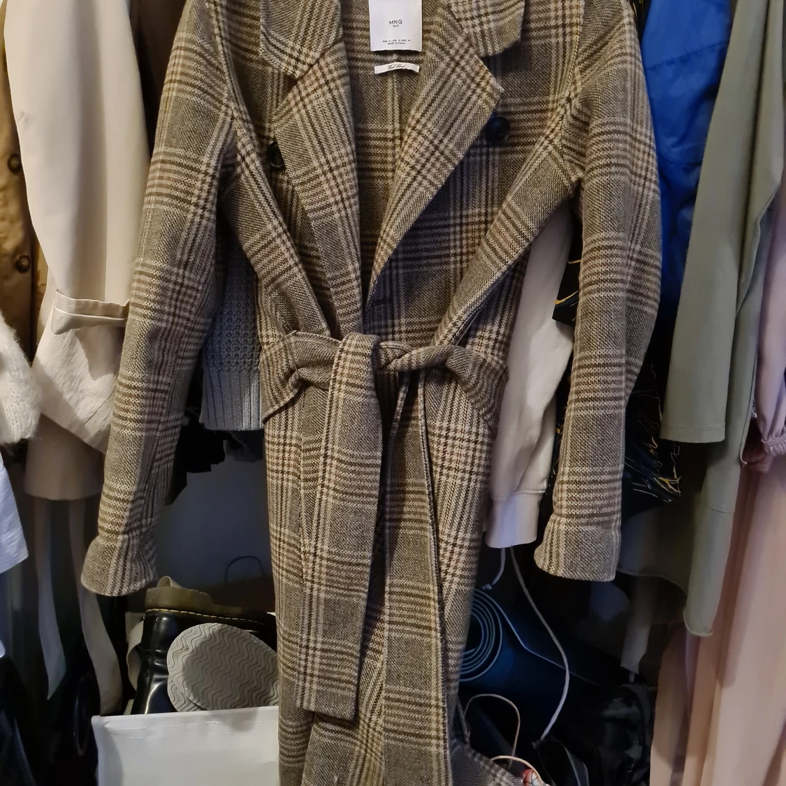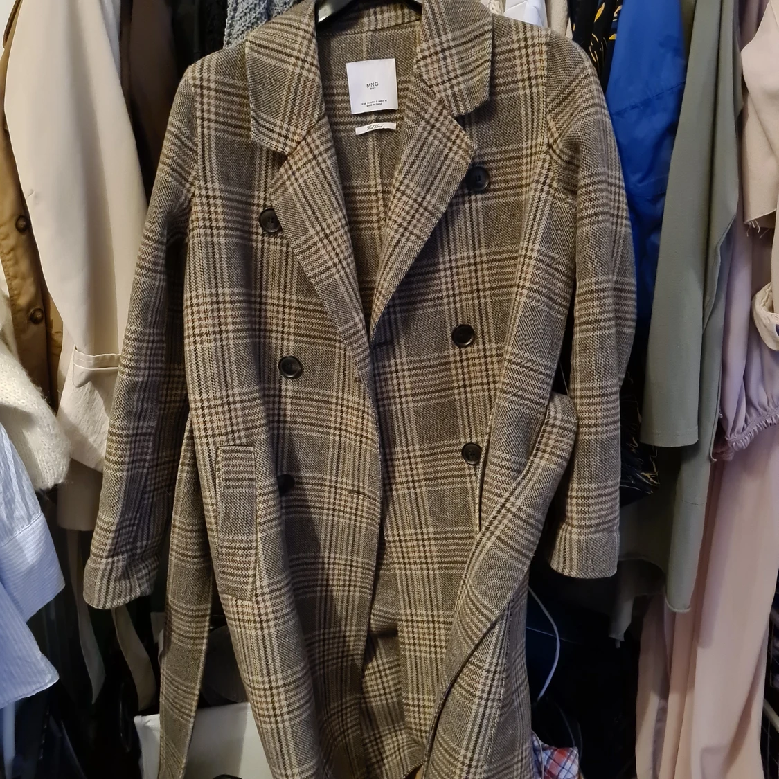 Rutig kappa med bälte, köpt från mango för typ två år sen. Den är välanvänd men är så bra kvalité så är så gott som ny!! Väldigt varm så funkar på vintern med tjockare kläder eller under höst/vår.