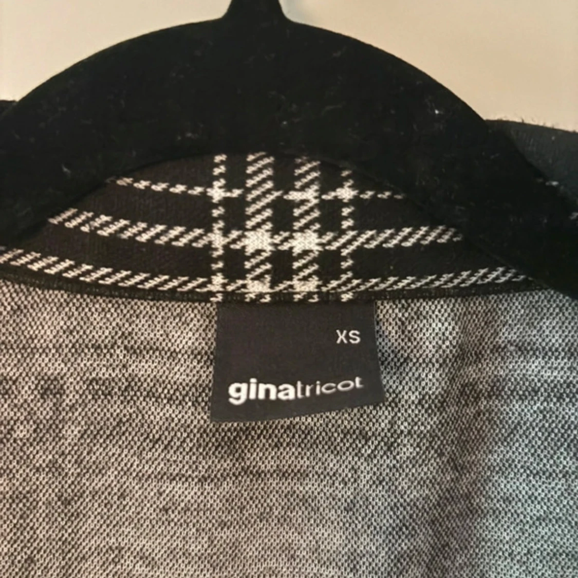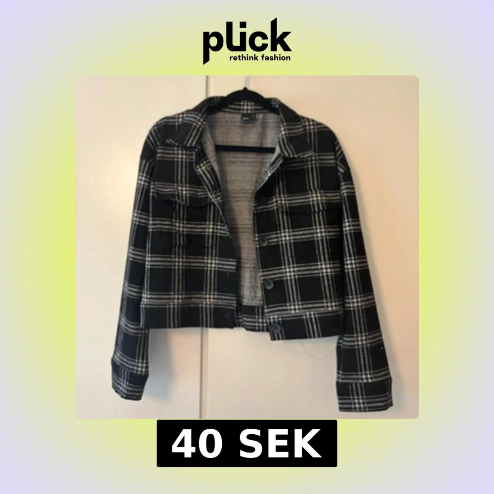 Snygg croppad overshirt från Gina Tricot i svart och vitt rutigt mönster. Jackan har klassisk krage, knappar framtill och två bröstfickor. Perfekt för lager-på-lager och ger en cool vibe till din outfit.