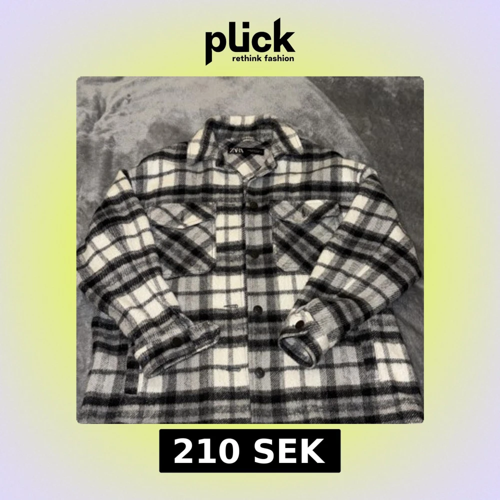 Snygg rutig overshirt från Zara i svart, grått och vitt. Skjortan har klassisk krage, knappar framtill och två bröstfickor med lock. Perfekt lager-på-lager-plagg med lång ärm och mjukt material.