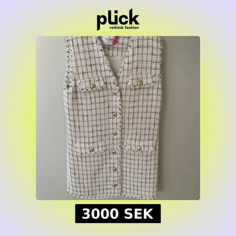Stilren rutig väst från Anine Bing i vit och svart bomullsblandning. Västen har guldknappar framtill, två bröstfickor med lock och råa kanter för en trendig look. Perfekt att styla över en skjorta eller t-shirt.