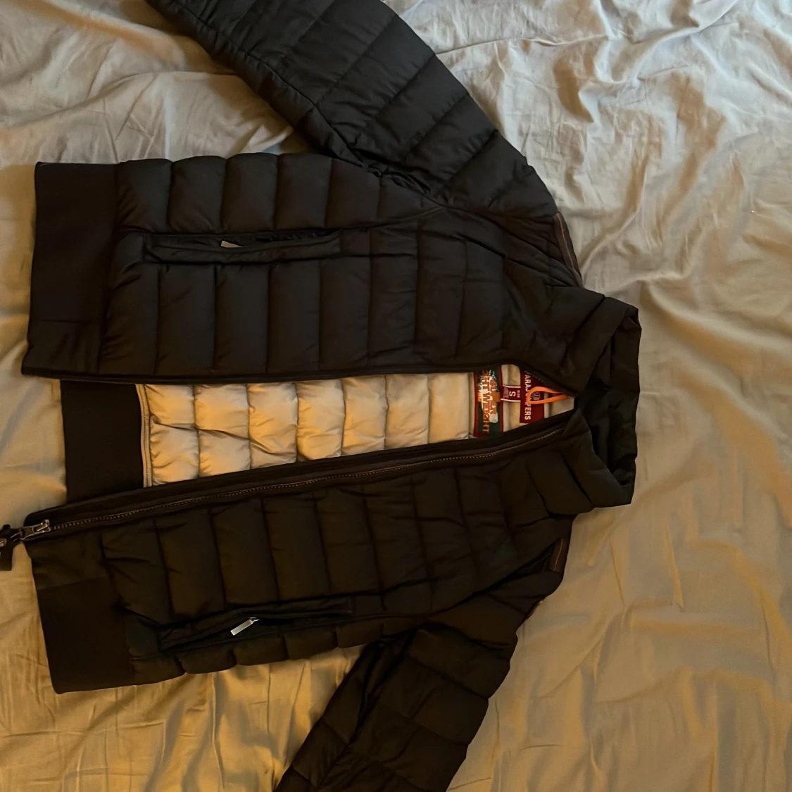 Säljer min parajamper jacka i storlek S väldigt bra skick . Köpte den för 5000 säljer den för 2000 pris kan diskuteras och minskas beroende snabb försäljning.