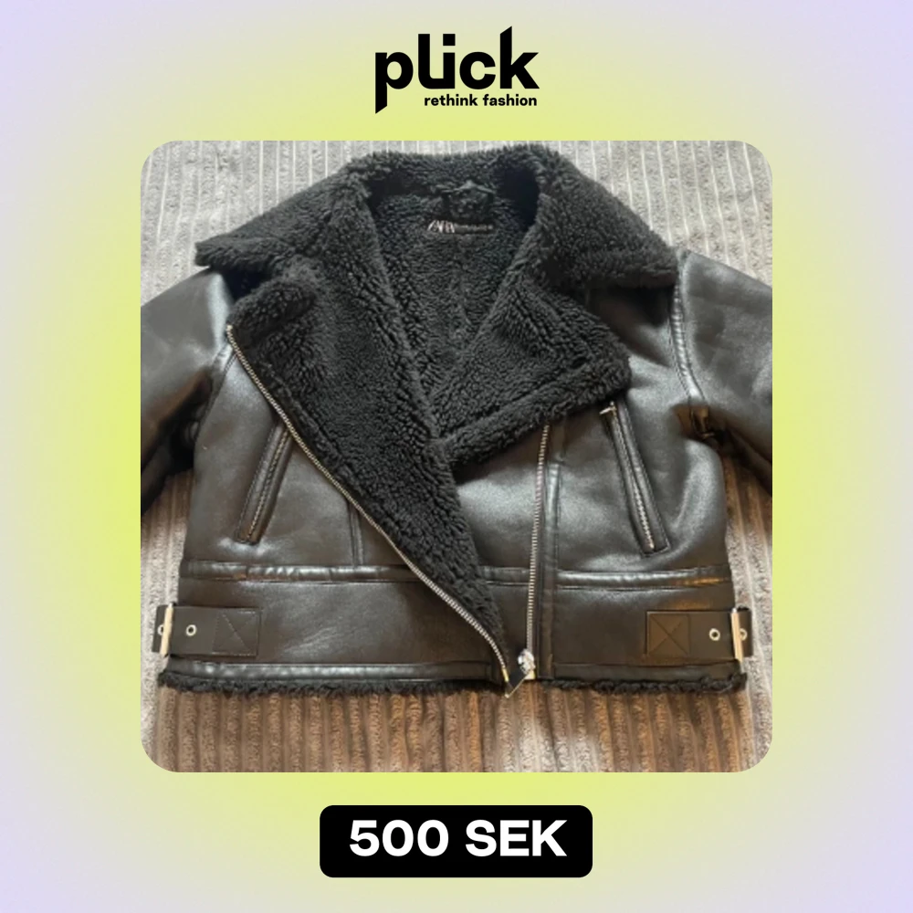 svart läder jacka med fluff på insidan
