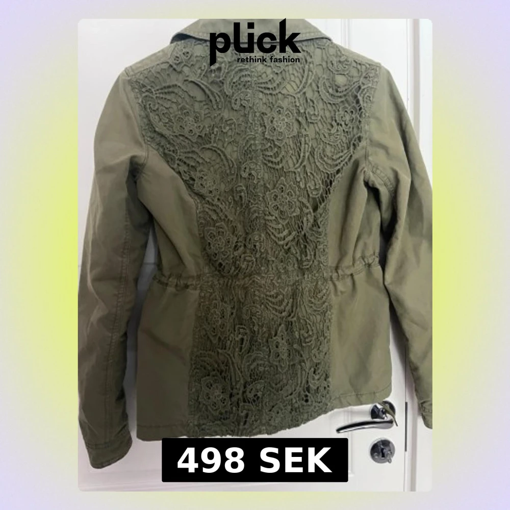 Olivgrön jacka med spetsdetaljer
