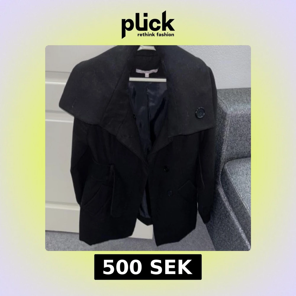 Svart trenchcoat från Marks & Spencer med bred krage och stora knappar. Jackan har ett snyggt bälte i midjan, två fickor framtill och är helfodrad. Passformen är normal och modellen är långärmad, perfekt för kyliga dagar. Kappan nerifrån ser ut som en kjol vilket passar ifall man vill lyxiga till vardagen. Jackan är i storlek S/36
