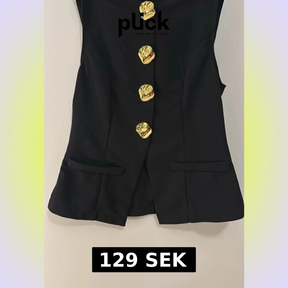 Svart kavajväst från SHEIN i storlek S, med unika, skulpturala guldknappar framtill. Västen har en stilren, figurnära passform och två dekorativa fickor. Perfekt för dig som vill sticka ut med coola detaljer och modern look.
