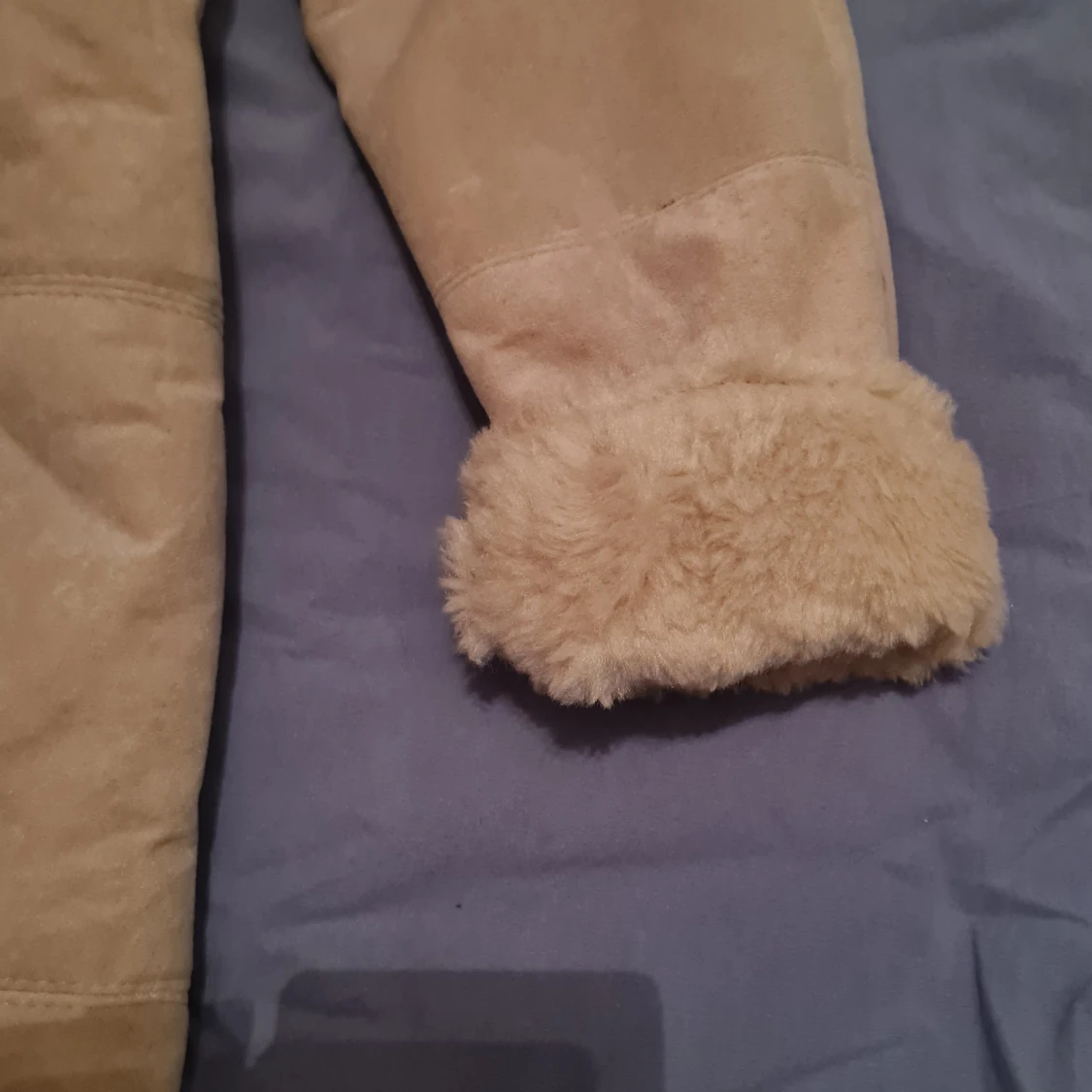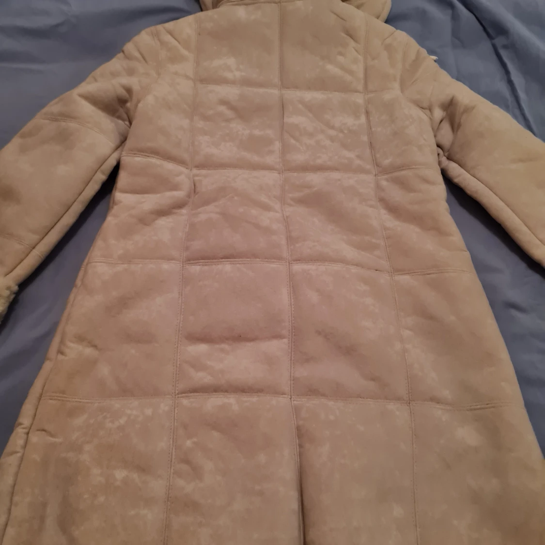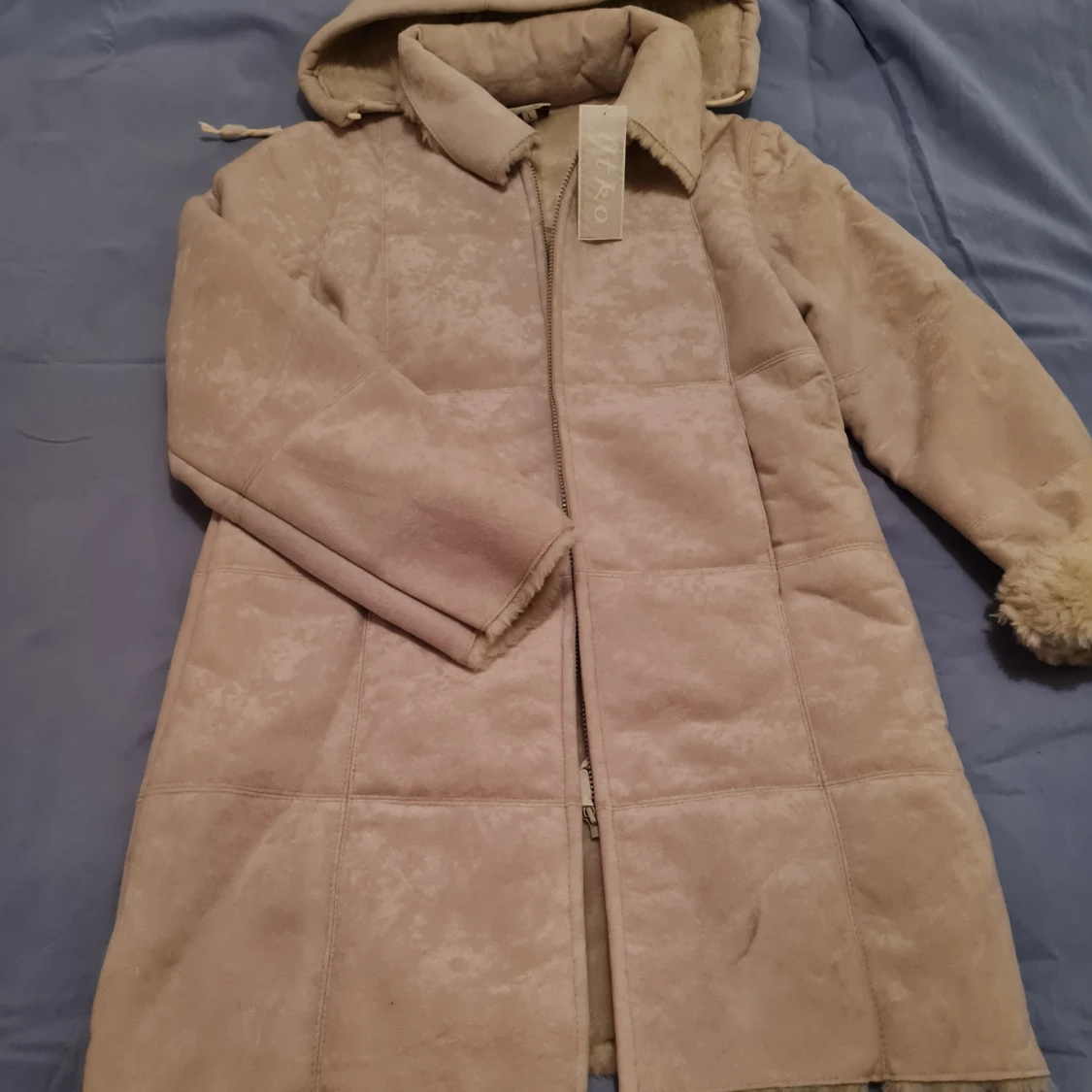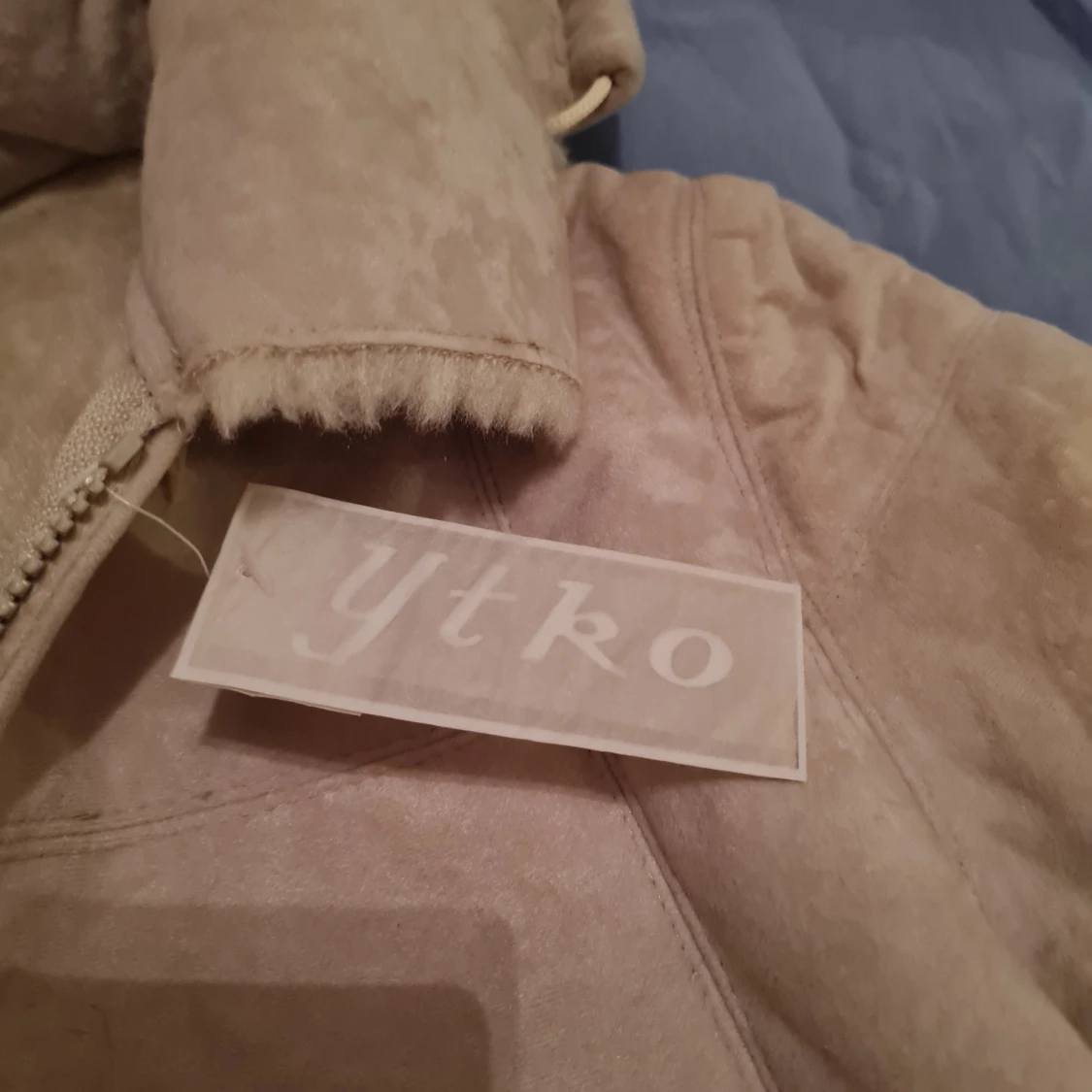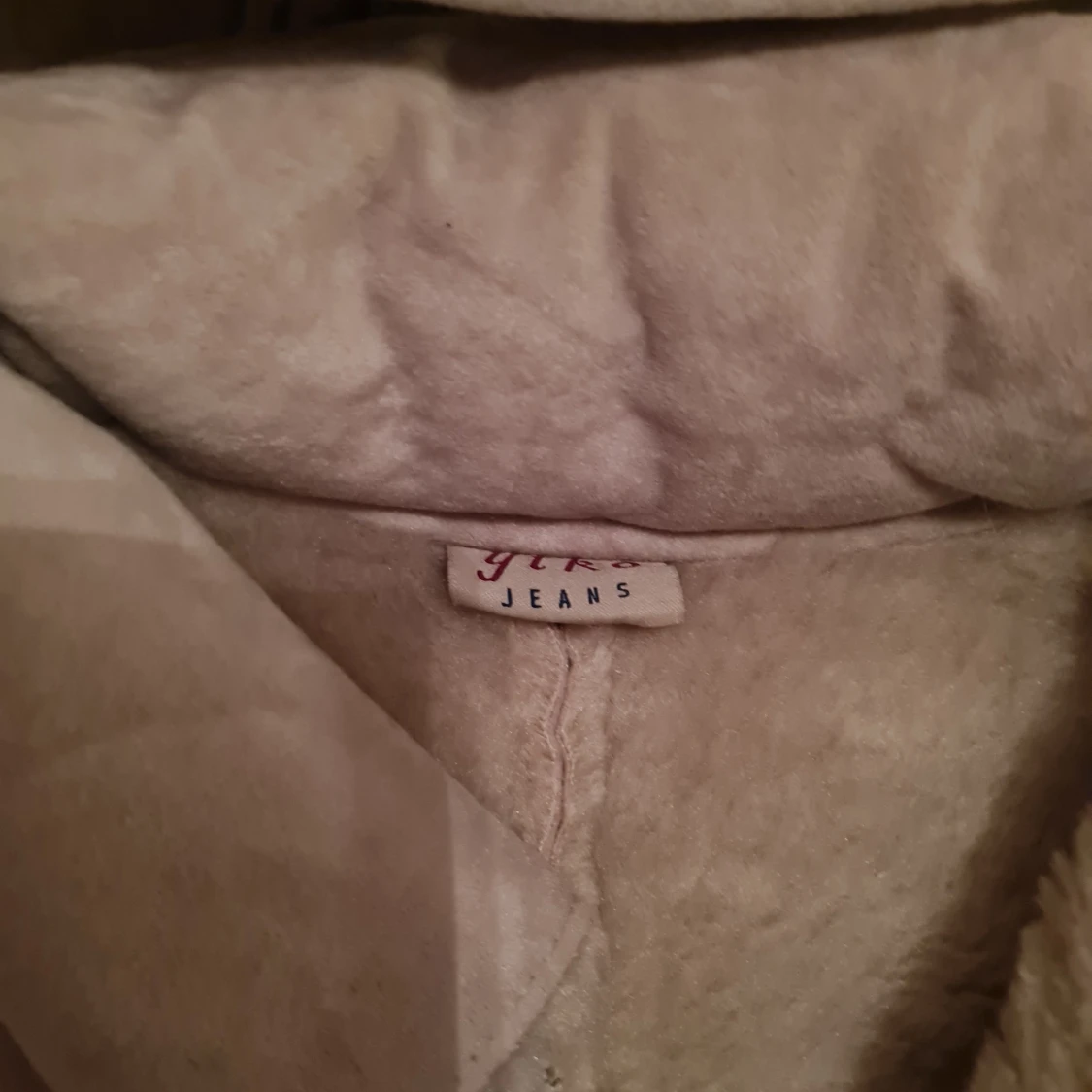 Säljer en beige lång kappa från Ytko Jeans med mjuk, pälsliknande insida och dragkedja framtill. Jackan har klassisk krage och långa ärmar, perfekt för kyligare dagar. Snygg och stilren design som passar till många outfits.