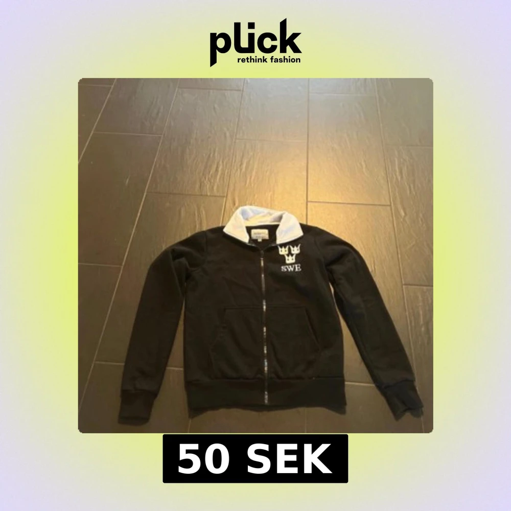 Svart jacka från Rosetti Riding med vit krage och dragkedja framtill. Jackan har SWE-tryck.