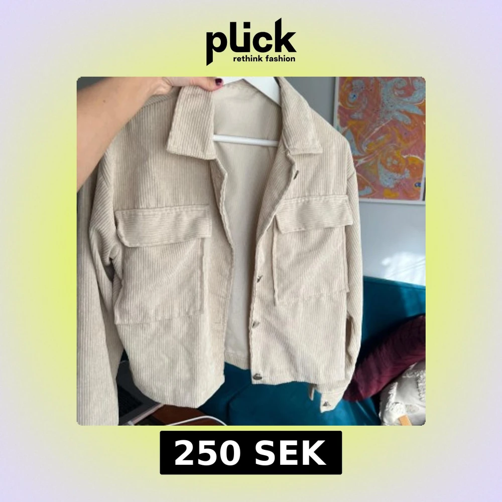 Säljer en snygg beige manchesterjacka med knappar framtill. Jackan har en klassisk krage och två stora fickor på bröstet. Perfekt för en stilren look!