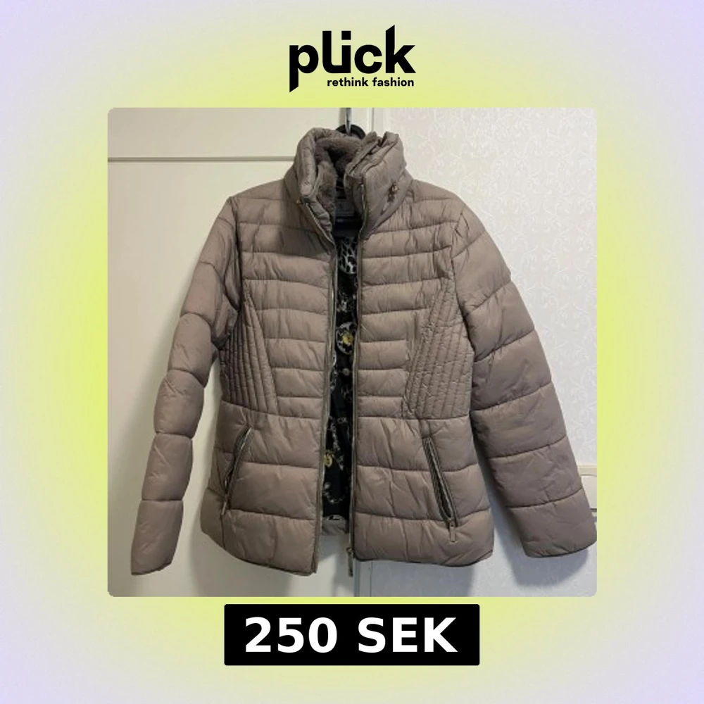 Säljer en beige pufferjacka från Flash Woman i storlek S. Jackan har quiltade detaljer, hög krage och dragkedjor på fickorna. Perfekt för kyliga dagar med sin vadderade design och stilrena look.