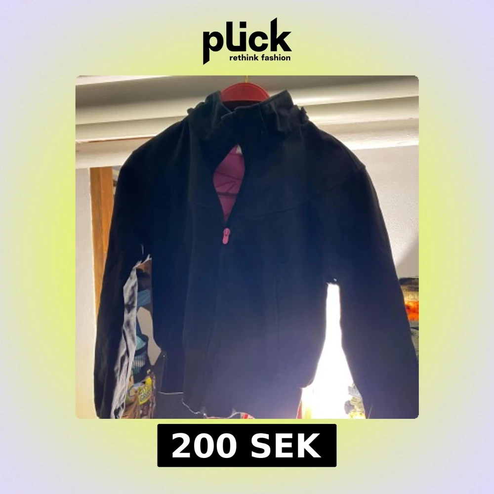 Svart fleecejacka med hög krage och rosa dragkedja framtill. Jackan har en enkel och stilren design, perfekt för lager-på-lager och chill dagar. Långärmad och mjuk, passar bra när det är lite kyligare ute.