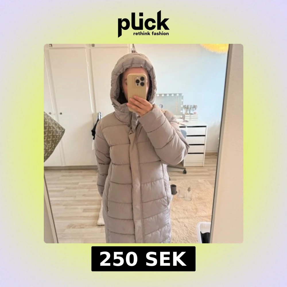 Säljer en beige lång pufferjacka med huva och dragkedja framtill. Jackan har ribbade muddar, fleecefodrade fickor och snygga detaljer med knappar och snörning vid huvan. Perfekt för kalla dagar när man vill vara både varm och stilren. Passar S-M
