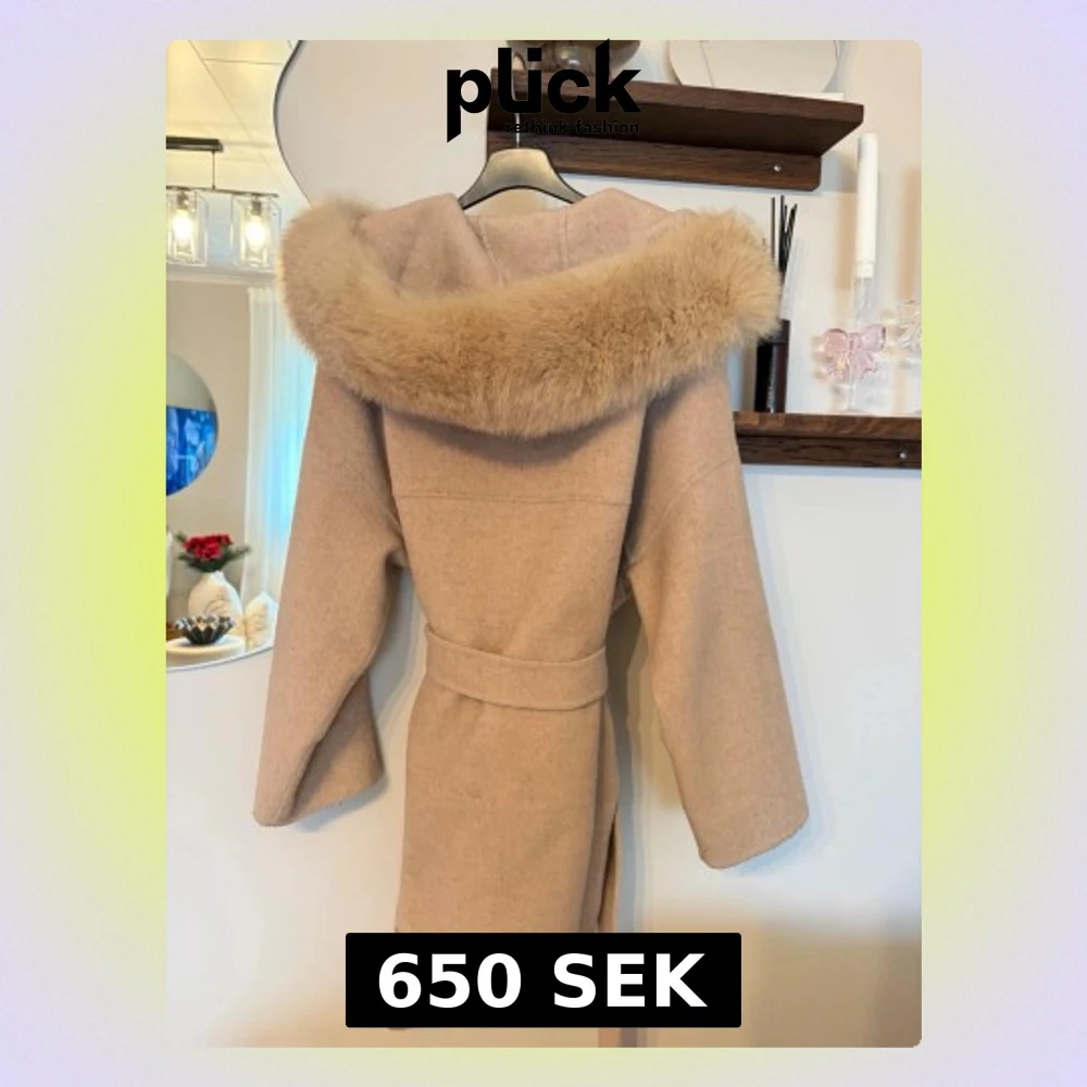 Snygg beige kappa med fluffig pälskant på huvan och knytbälte i midjan. Jackan har en avslappnad passform och långa ärmar, perfekt för dig som vill ha en mysig och trendig look. Materialet känns mjukt och värmande, och huvan ger extra stilpoäng.