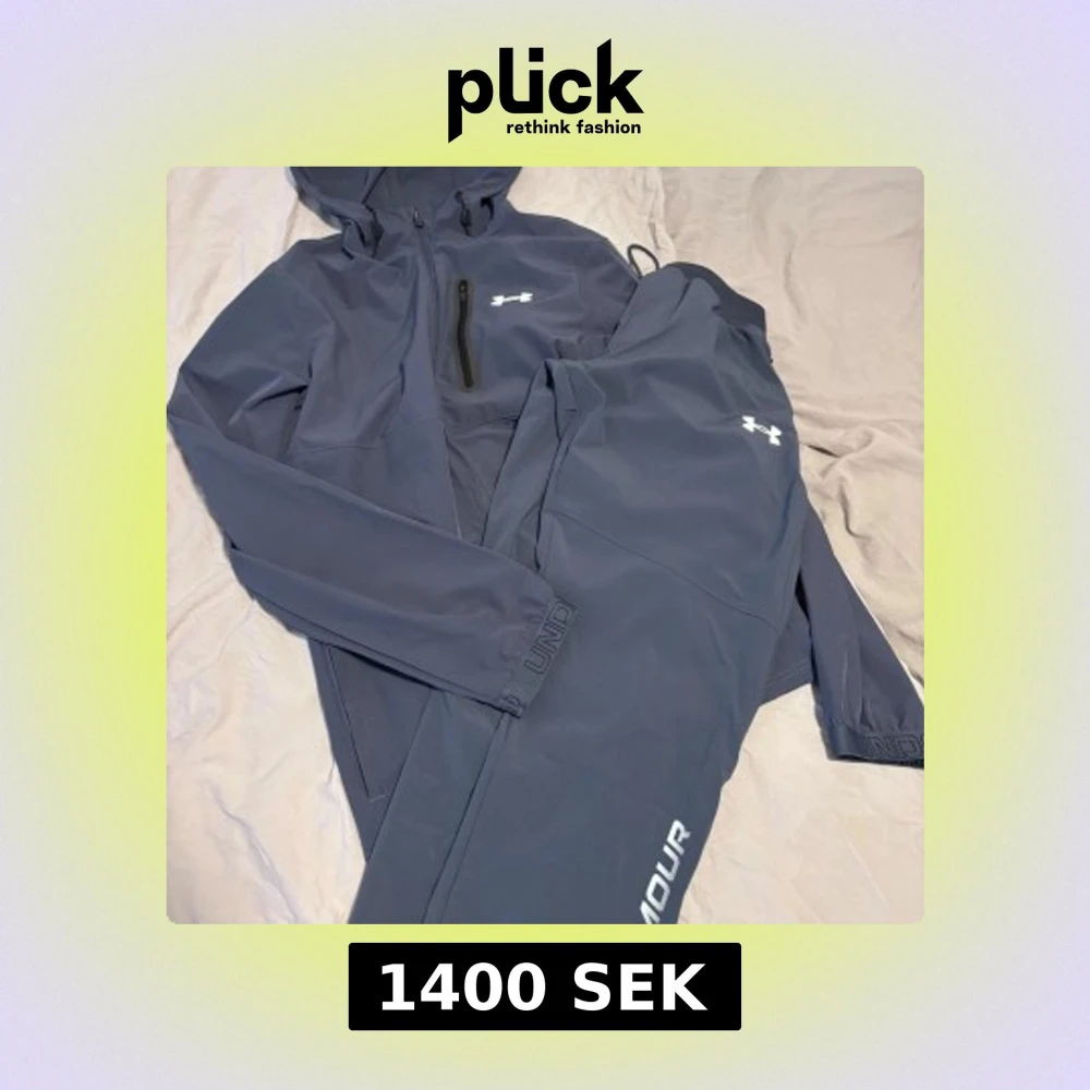 Snygg blå tracksuit från Under Armour med huva och dragkedja framtill. Jackan har en sportig look med vit logga på bröstet och svart bröstficka med dragkedja. Perfekt för träning eller chill dagar. Materialet är lätt och känns skönt mot huden.