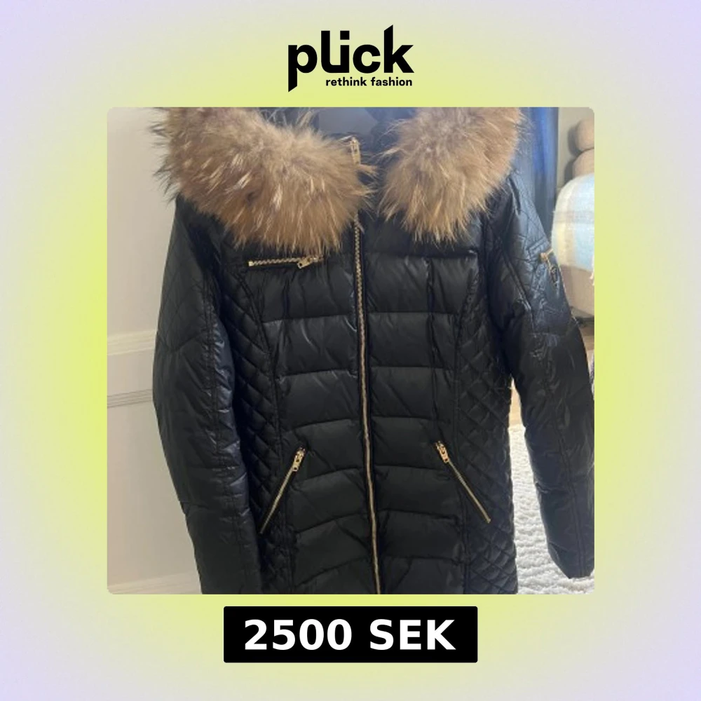 Svart dunjacka från Rockandblue med stor fluffig päls , guldfärgade dragkedjor och leopardmönstrat foder. Jackan har inga märken och är som ny. Den är i storlek 42 men sitter som en S/M. Nypris är 5000 kr