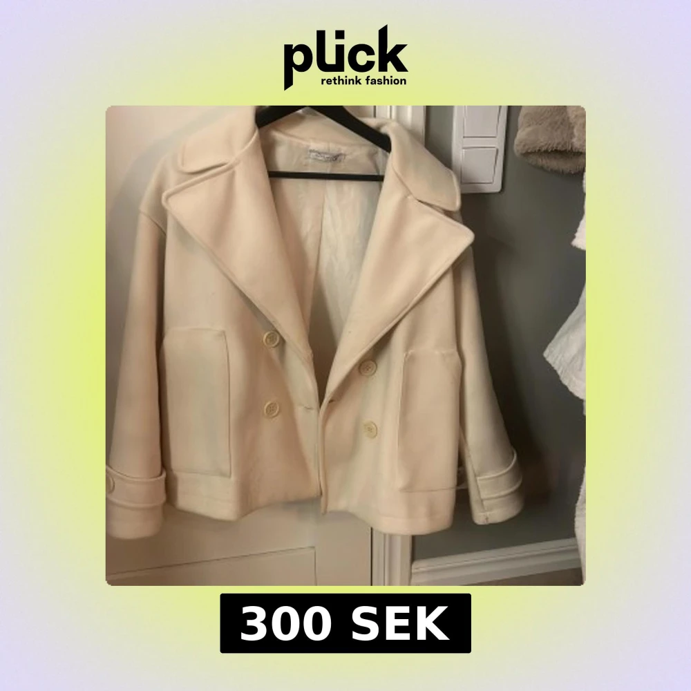 Snygg beige kappa från Zara med dubbelknäppning och breda slag. Jackan har en kortare passform och stora fickor framtill. Perfekt för en stilren look.