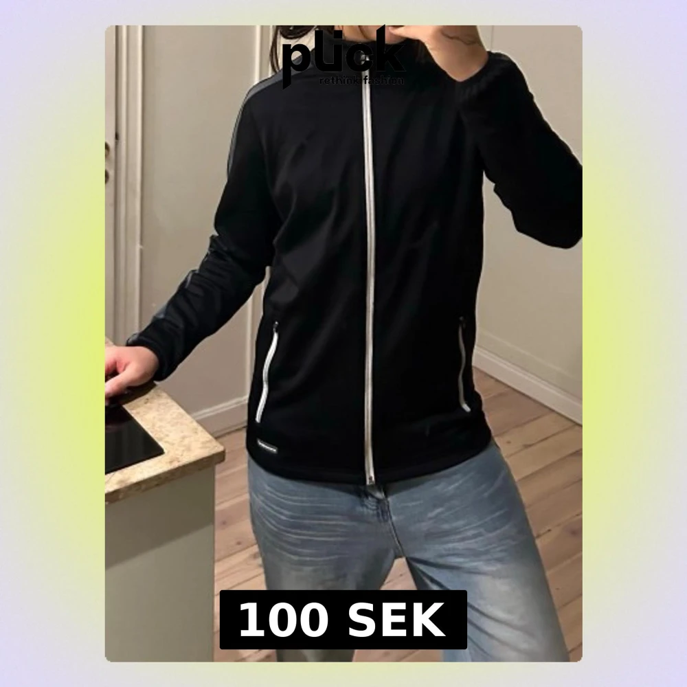 Säljer en svart jacka från Cutter & Buck i storlek S. Jackan har hel dragkedja framtill, två fickor med dragkedja och gråa detaljer längs ärmarna. Materialet är lätt och andas, perfekt för utomhusaktiviteter. Sportig look med hög krage och smal passform.