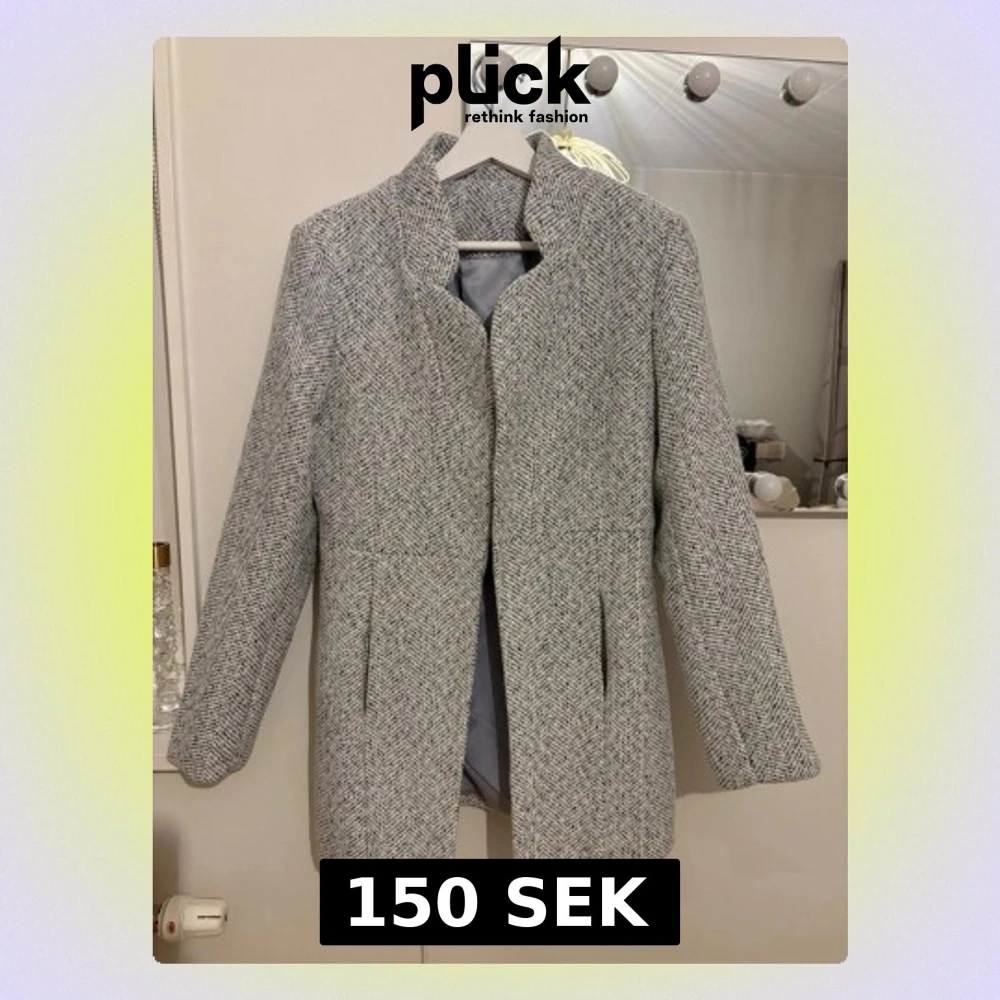 Snygg gråmelerad kappa med diskret fiskbensmönster och rak passform. Jackan har lång ärm, ståkrage och är fodrad med slätt tyg på insidan. Perfekt för dig som gillar stilrena och klassiska ytterplagg.